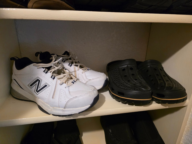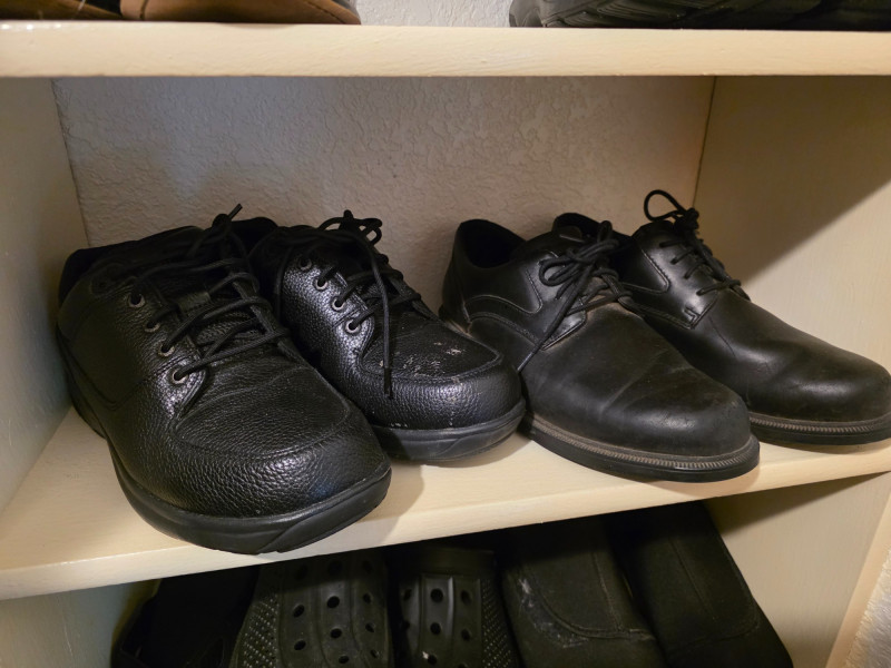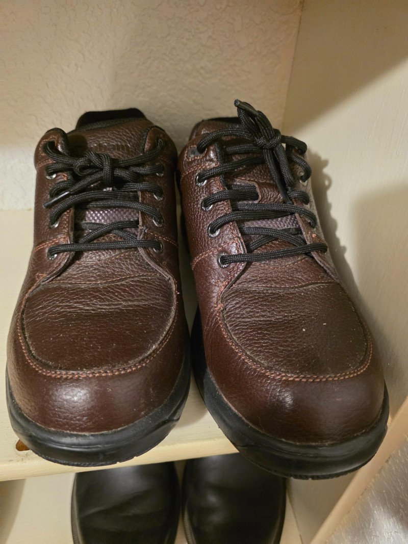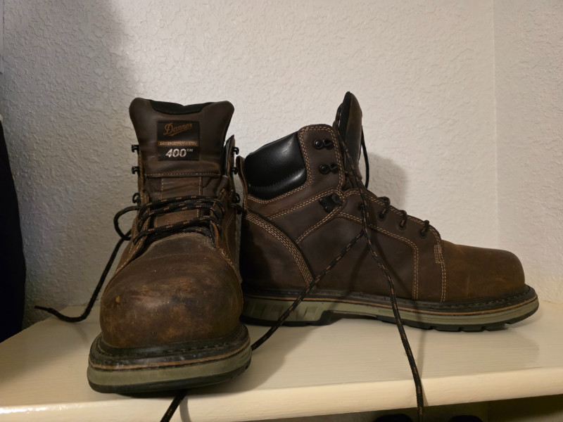 (12) Men's Boots, Shoes, Sandals & Flip Flops - Size 10/10.5 (1) Danner 6" Steel Yard Steel Toe Waterproof Work Boots - Size 10.5 (1) Bostonian Black Lace-Up Dress Shoes (1) Dunham Brown Lace Up Shoes (1) Dunham Black Lace-Up Shoes (1) Dunham Black Lace-Up Dress Shoes (1) Propet Neoprene Velcro Shoes (1) Foam Slip-In Shoes (1) New Balance 608 White Tennis Shoes (5) Sandals