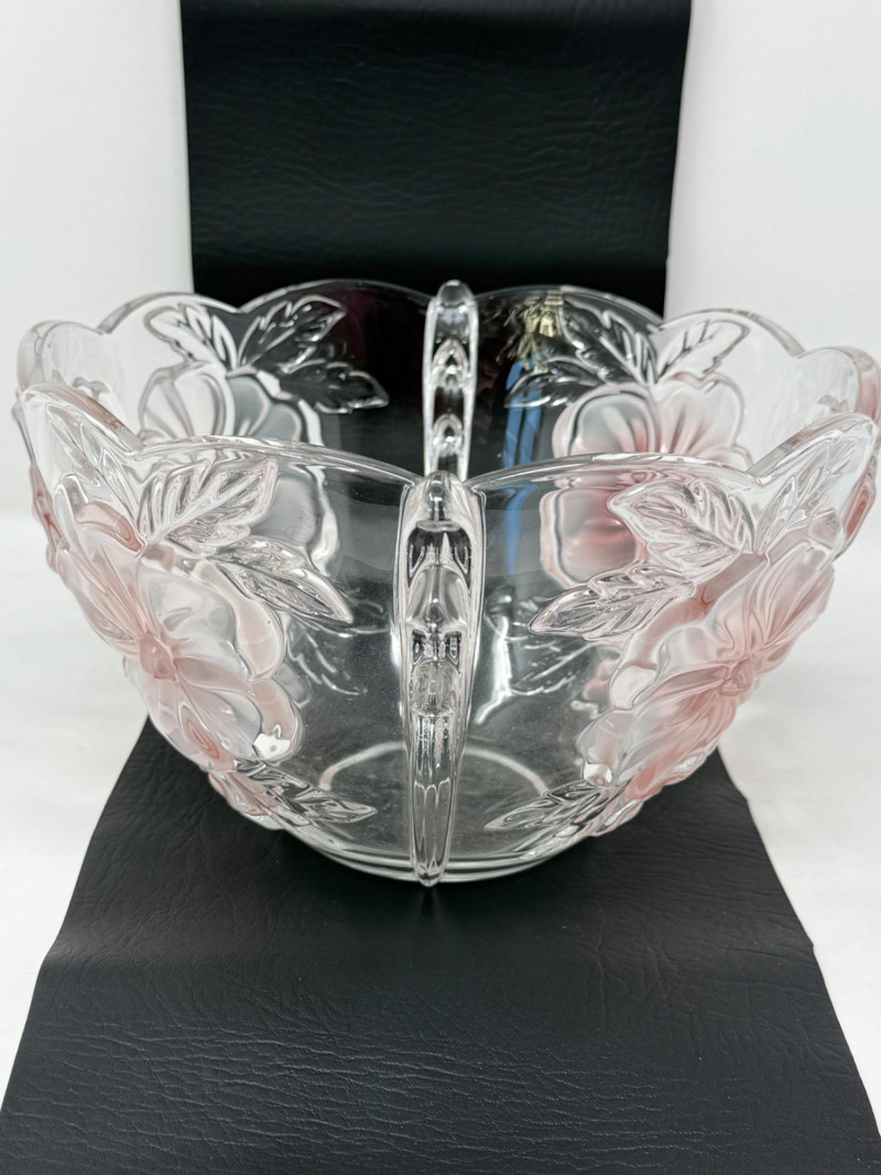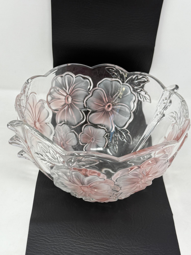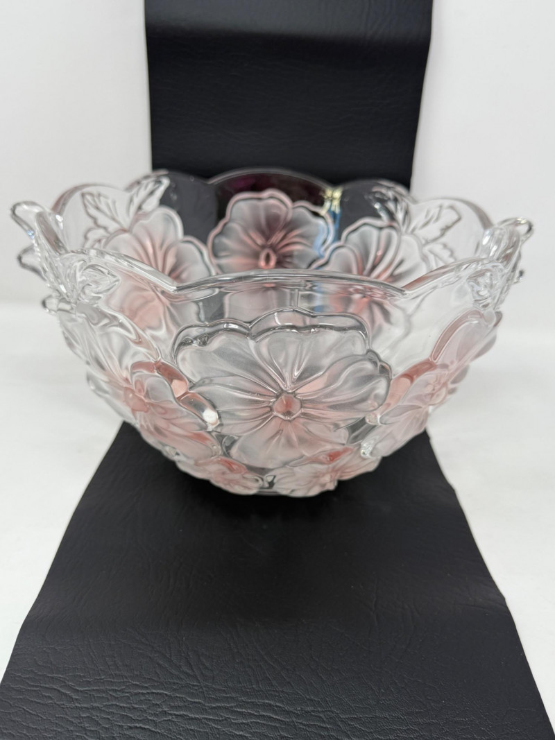 Mikasa Crystal “Tulips Pink” & “Pansy Bouquet” Bowls Studio Nova 'Pansy Bouquet' or 'Bella Rosa Pink Frost' crystal serving bowl. Features a pink frosted floral design with a scalloped edge. Made of heavy lead crystal in Germany. Measures approximately 9 inches in diameter and 6 inches high