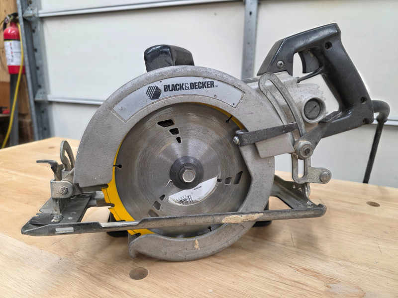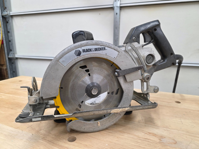 Black & Decker Industrial Grade Corded 7.25" Worm Drive Circular Saw This is an industrial/construction grade corded electric saw Type: Worm Drive circular saw. Blade Diameter: 7 1/4 inches. Power Source: Corded electric, 120V. Tested - Works!