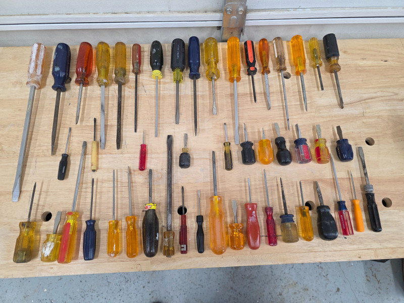 (48) Flat-Head Screwdrivers 3" - 14" long Craftsman, Husky, NAPA, Amalite, Stanley and many more! Fill the tool drawer!
