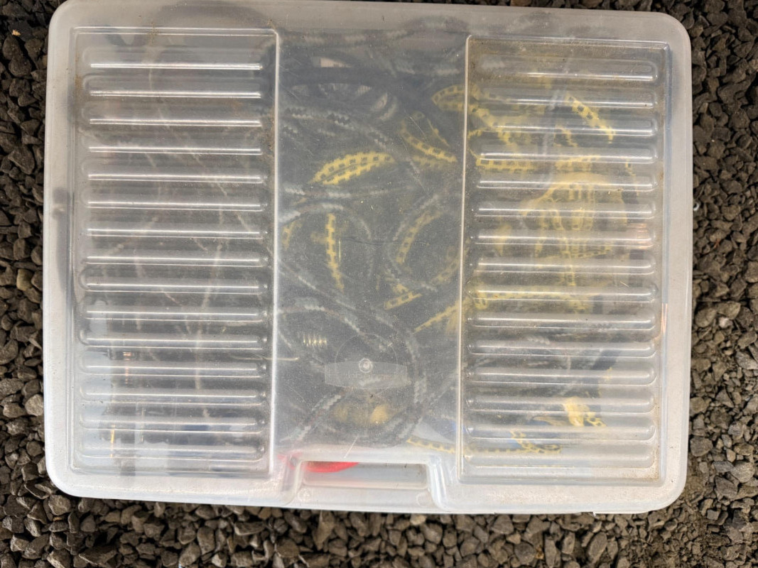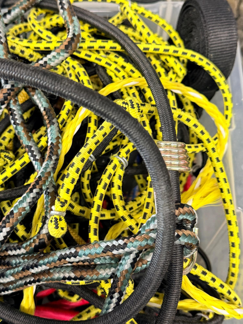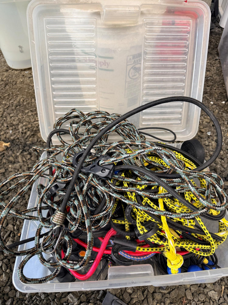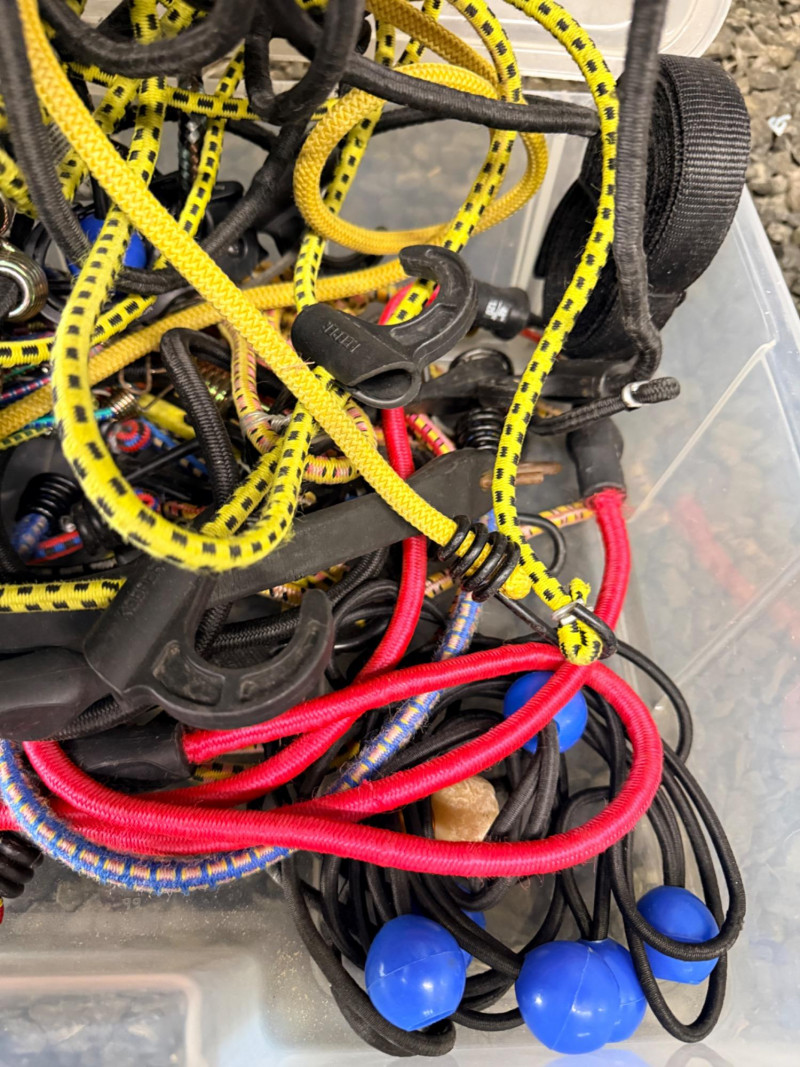 Storage Box of Bungee Cords and Fasteners All sizes and lengths. See pics for details.