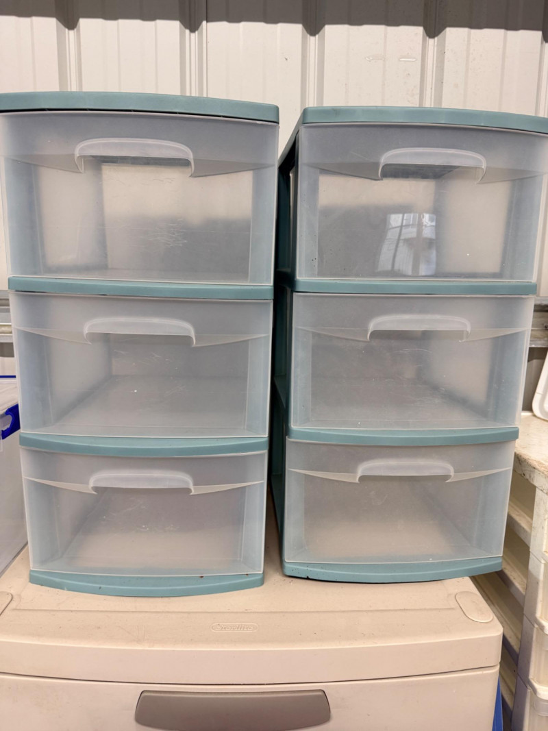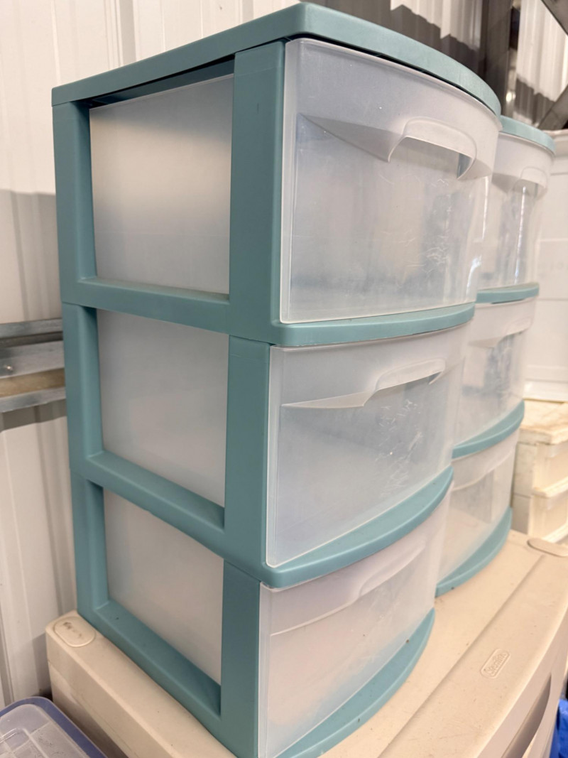 (2) 3 Drawer Storage Units Each unit measures 12.5”x14.5”x24” tall.