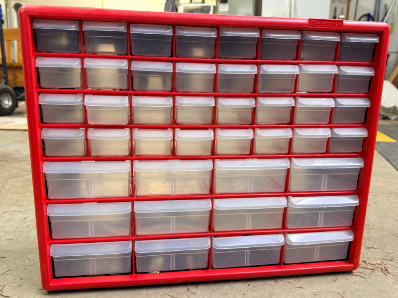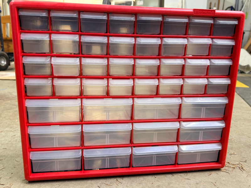 Lot # 201 - Red and Black 44 Drawer Storage Cabinet