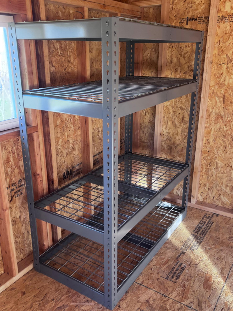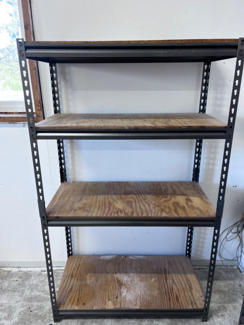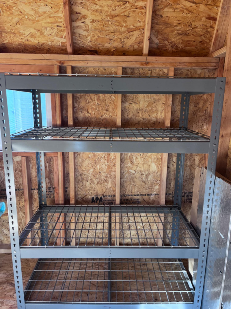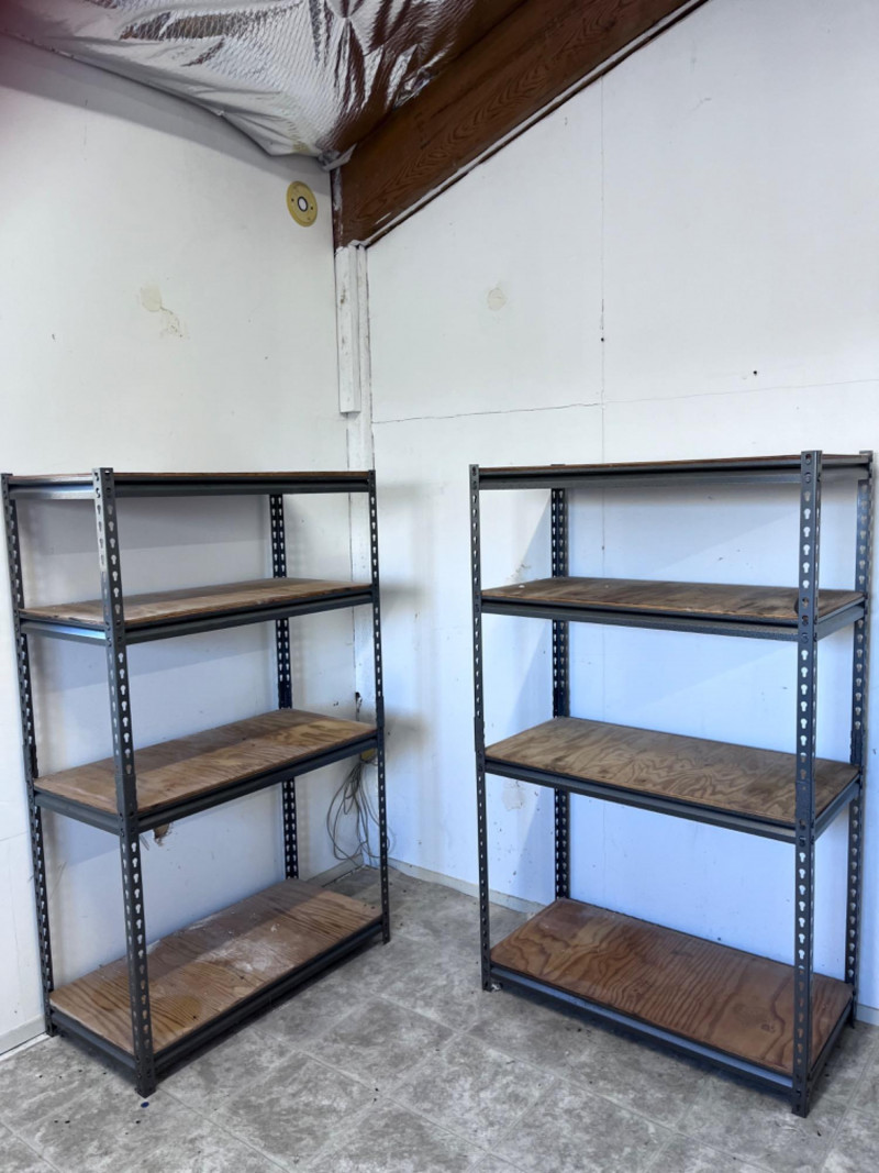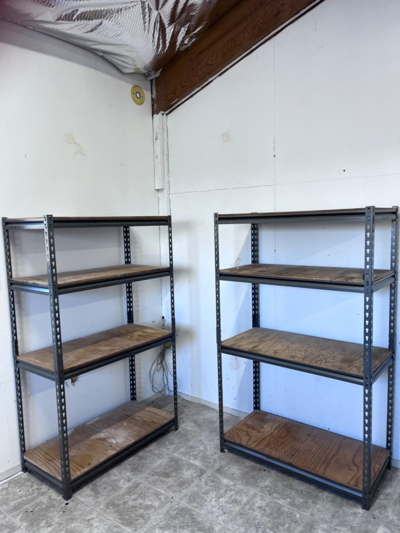 (3) Metal Storage Shelves Metal frame shelf with wire racks. Four wire rack adjustable shelves. 48.5”x24.5”x59.5”