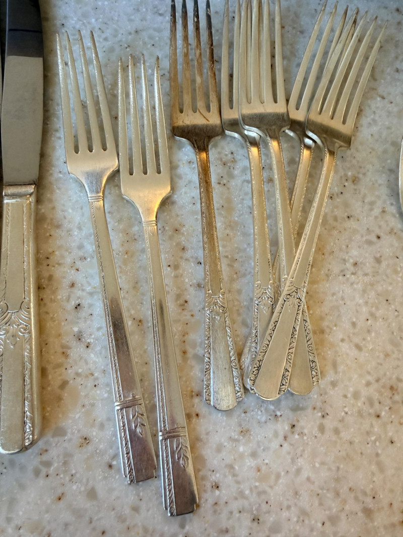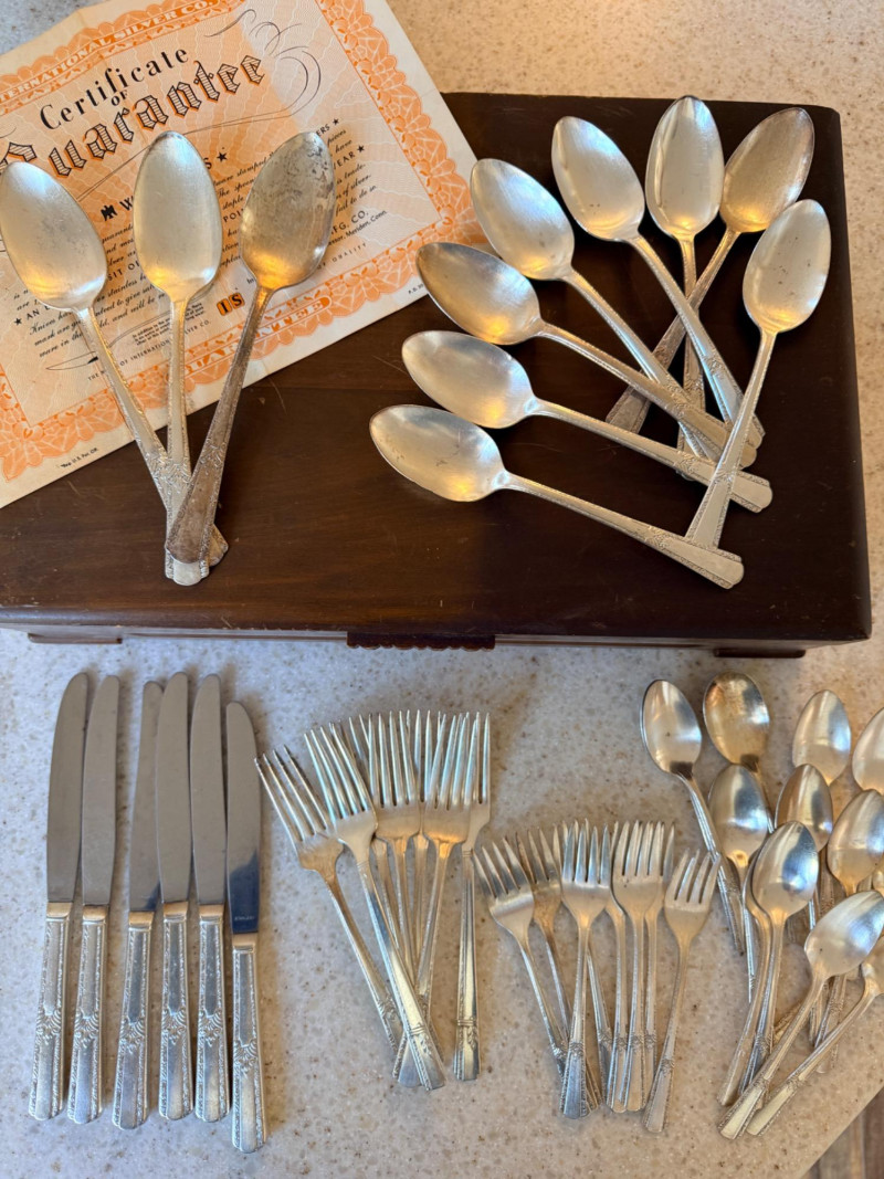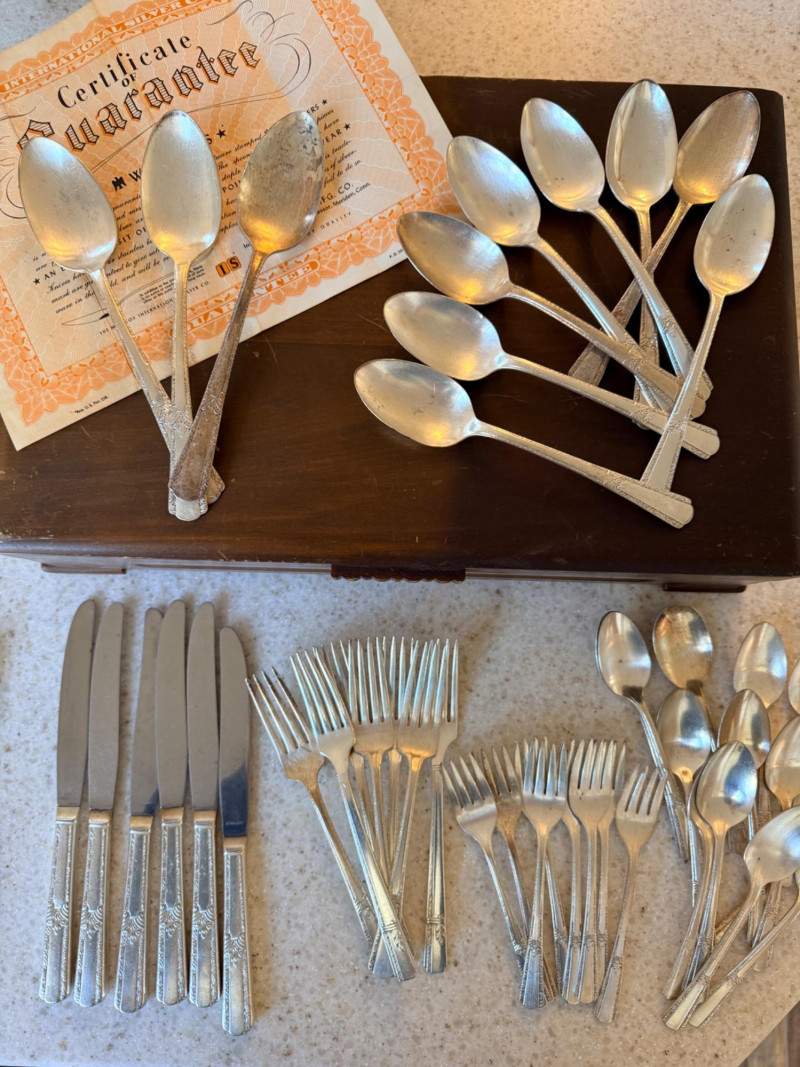 Wm Rogers Silver Plate “Sectional” Flatware in Wood Box