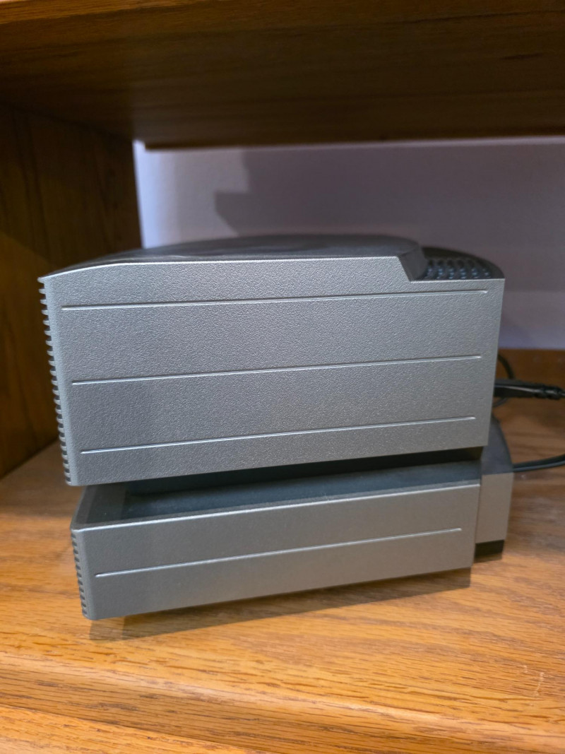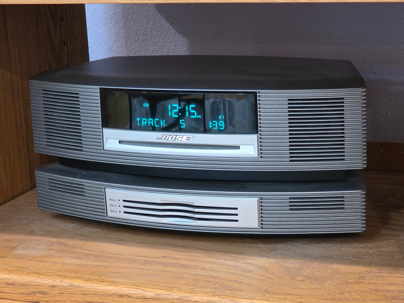 Bose Wave Music System & Multi-CD Changer In Graphite Gray Color It utilizes Bose's proprietary waveguide speaker technology for rich, full sound. The main unit features a slot-loaded CD player and AM/FM radio functionality. The accompanying second unit is a multi-CD changer that allows up to an additional 3 CDs to be played Controlled via an infrared remote control Includes remote, power cable, interface cable between the radio & CD changer components Tested - Works Great! 6.25"T x 13.5"W x 8.25"D