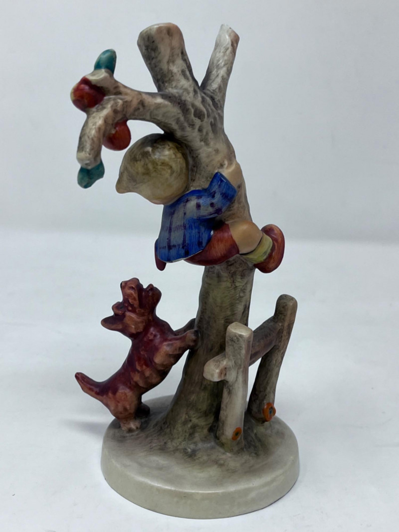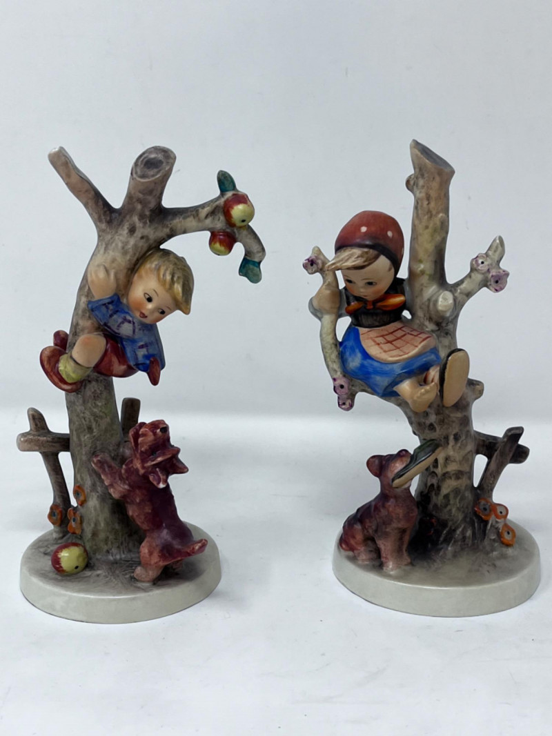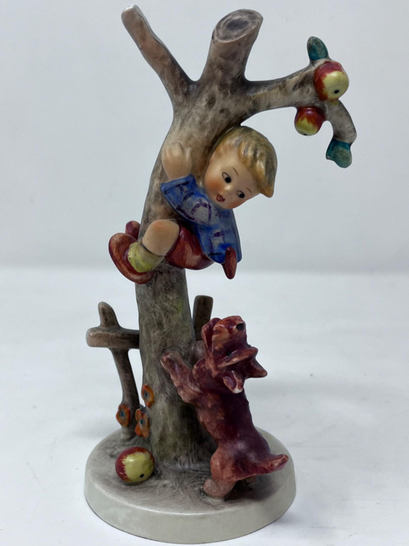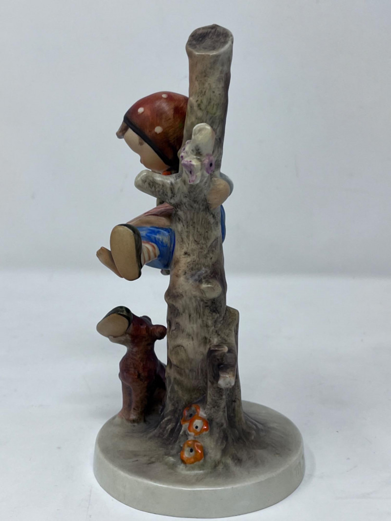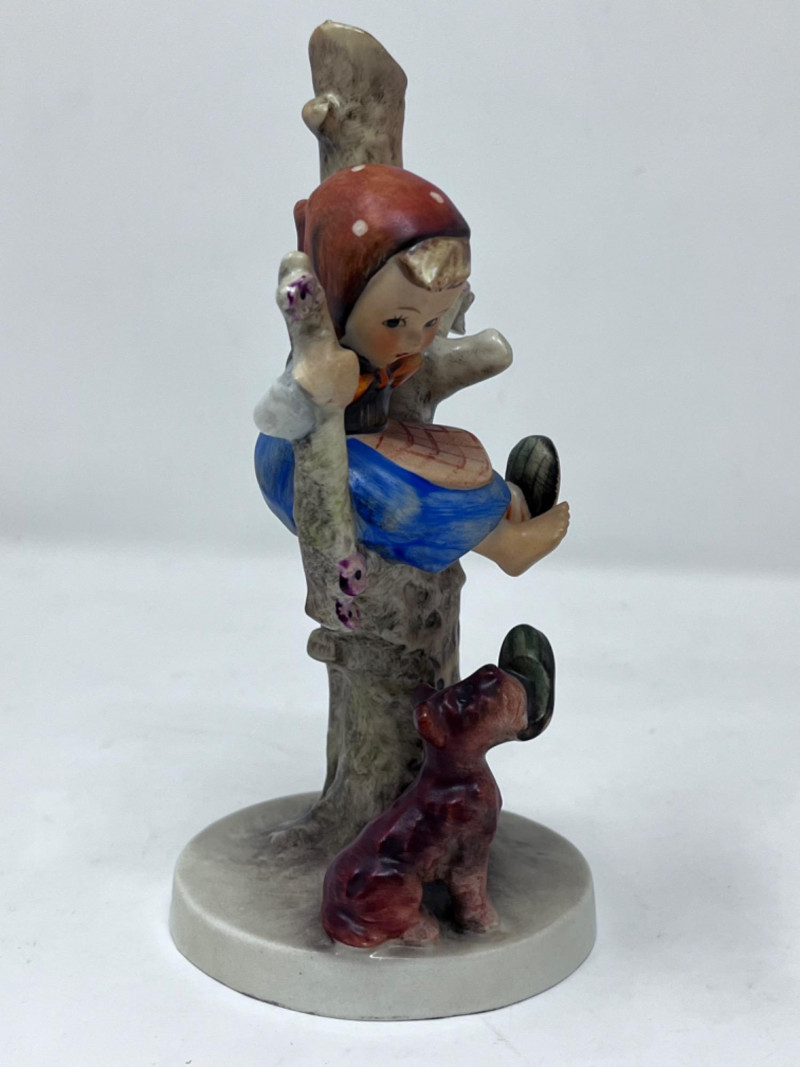 M.I. Goebel Hummels - “Culprit” & “Out of Danger” Hummel figurine titled "Culprits" or "Boy in Tree with Dog" (#56/A). It is produced by the German company Goebel based on the artwork of Sister Maria Innocentia Hummel. 6.5” x 3 1/4”