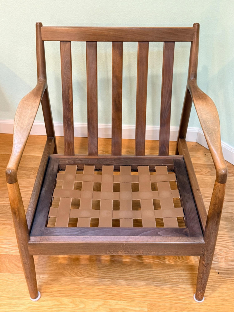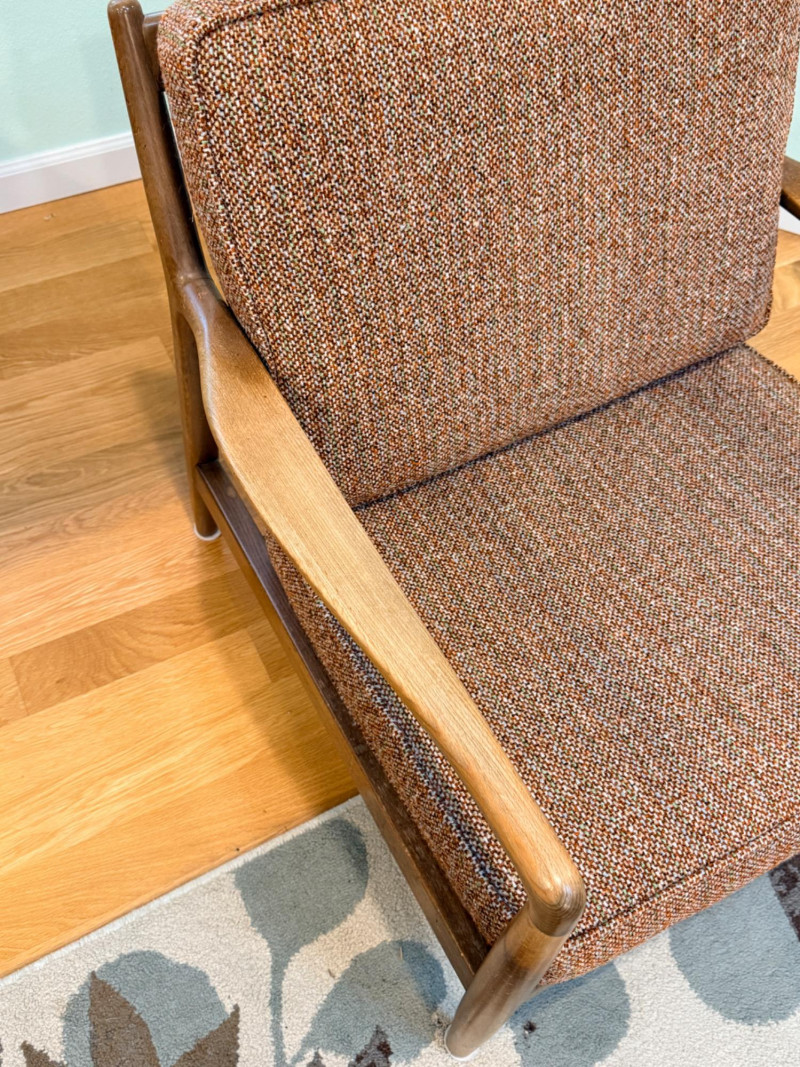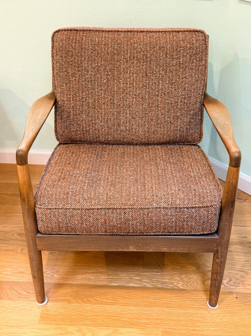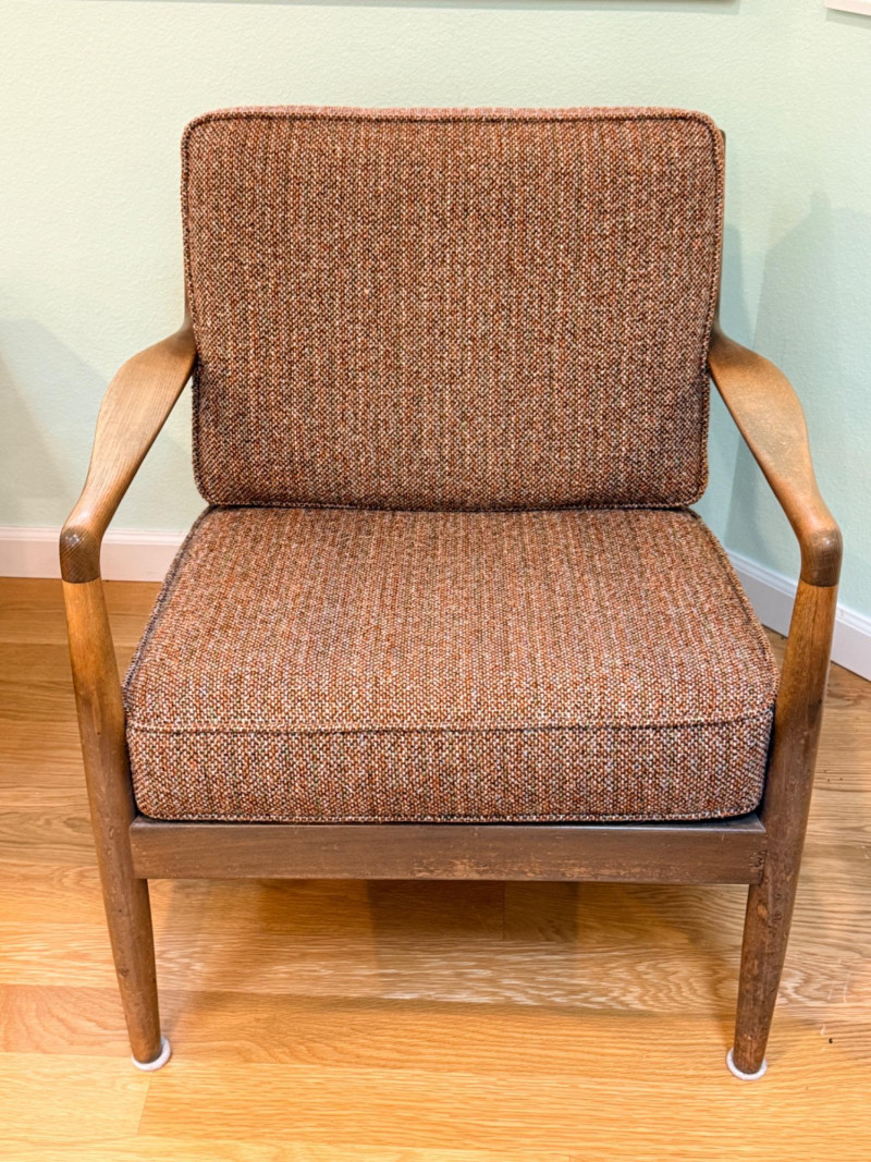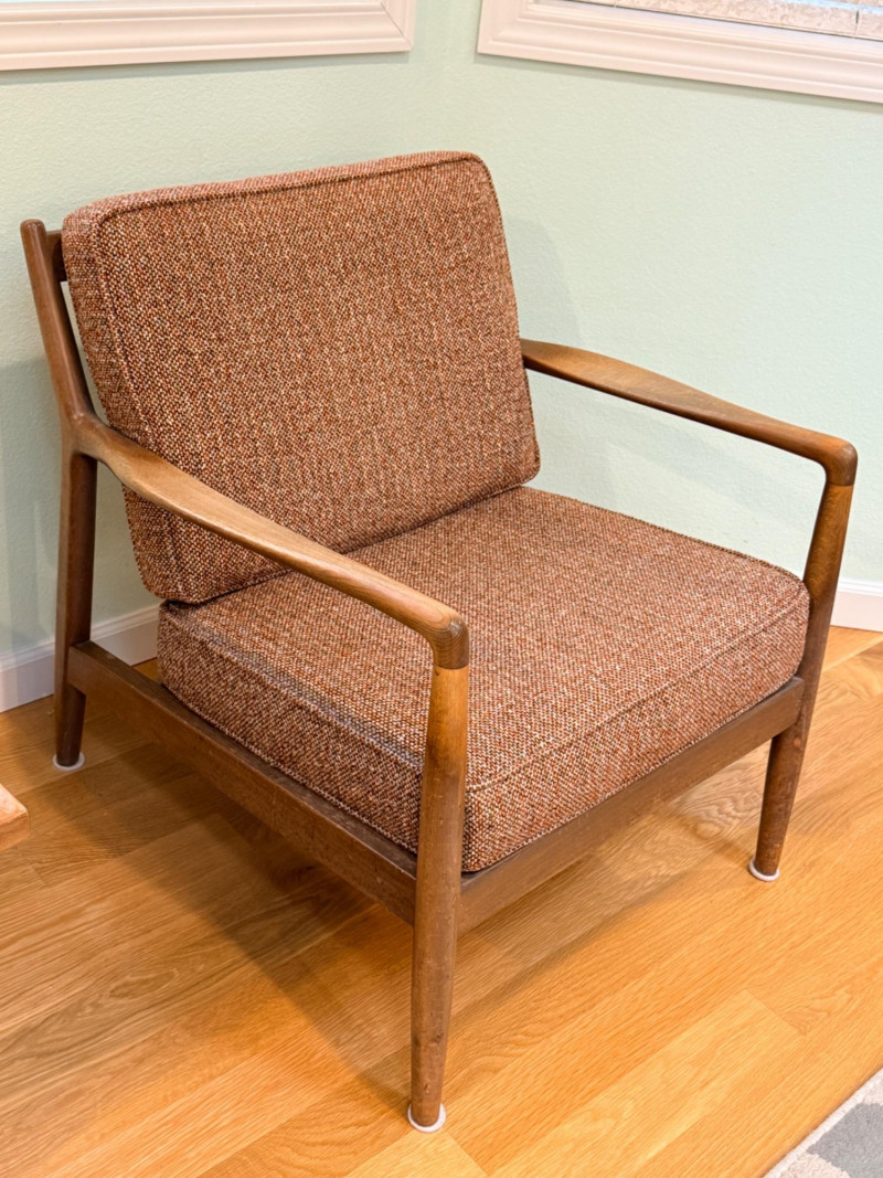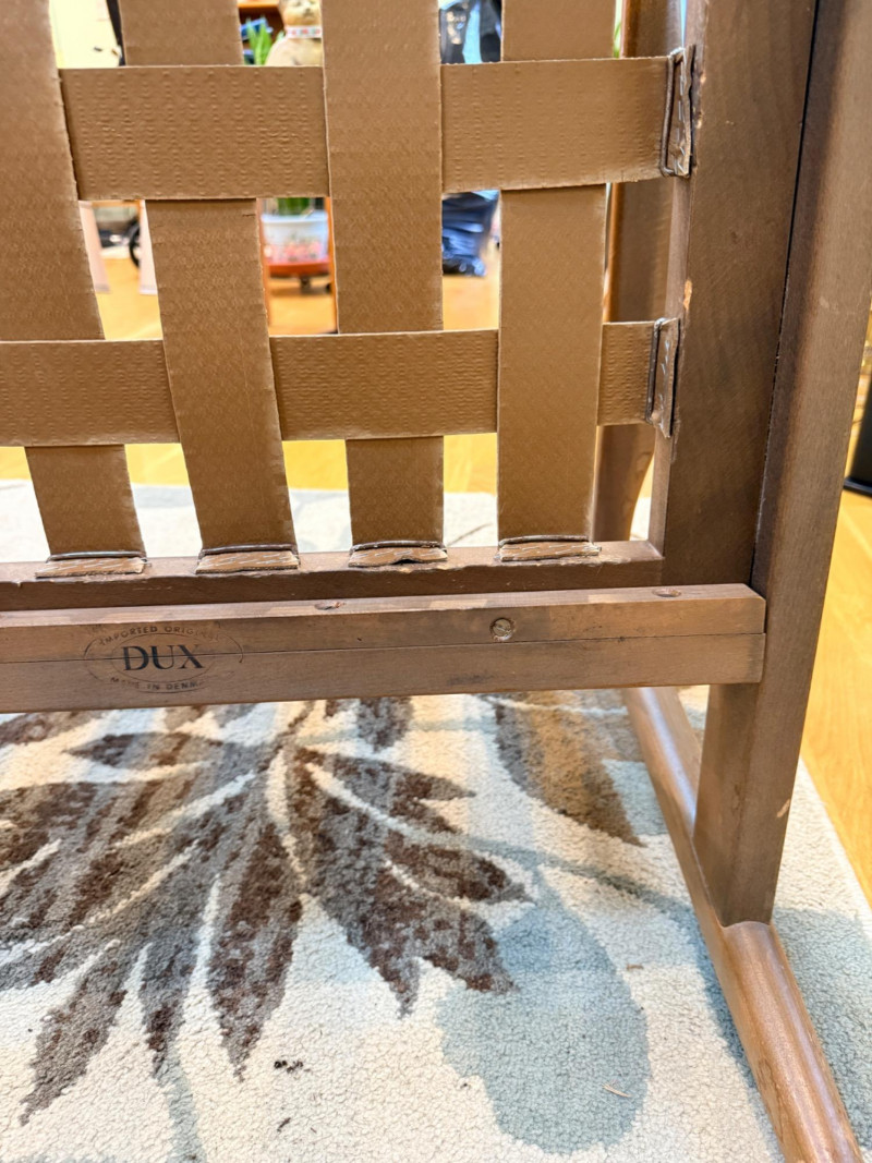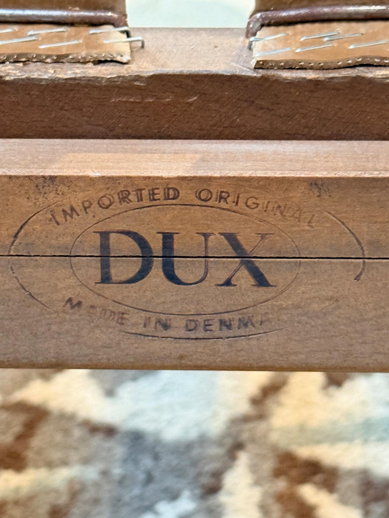 DUX Arm Chair imported from and made in Denmark with original tobacco upholstered cushions.
