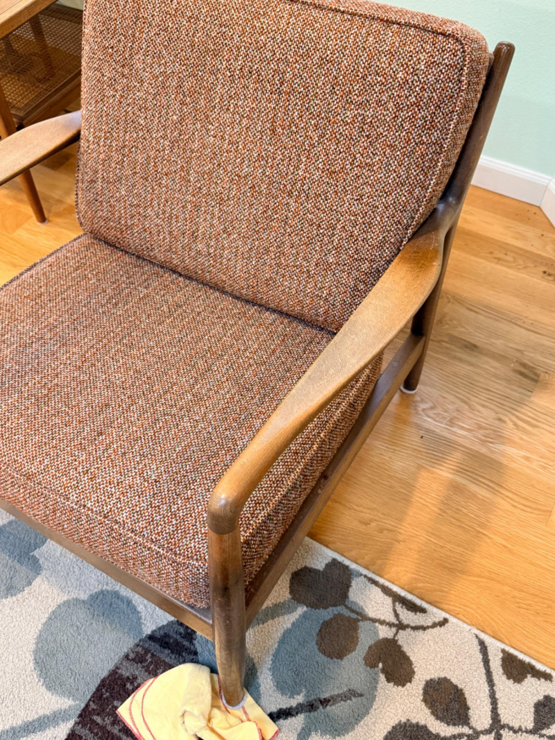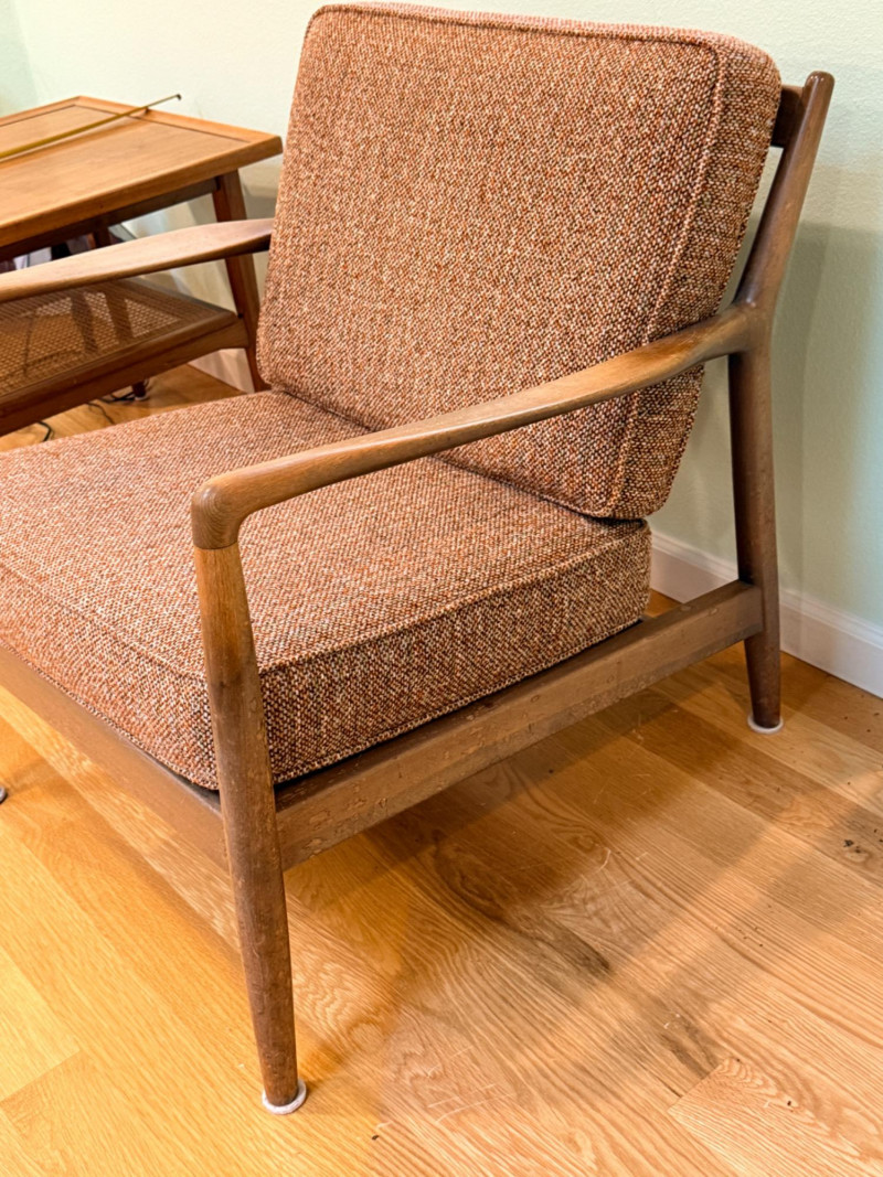 Mid-Century Scandinavian Folke Ohlsson Teak Lounge Chair By Dux Some water spots on the lower legs and light fading from use on the arms. Well built and solid chair. 27”x27”x27” with 16” seat height.