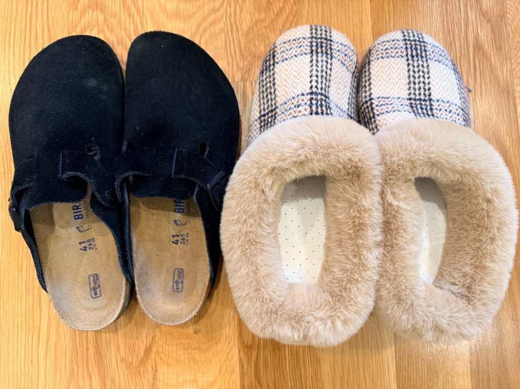 Lot # 38 - Black Suede Birkenstock Shoes Size 41 & Dearfoam Slippers 11/12
