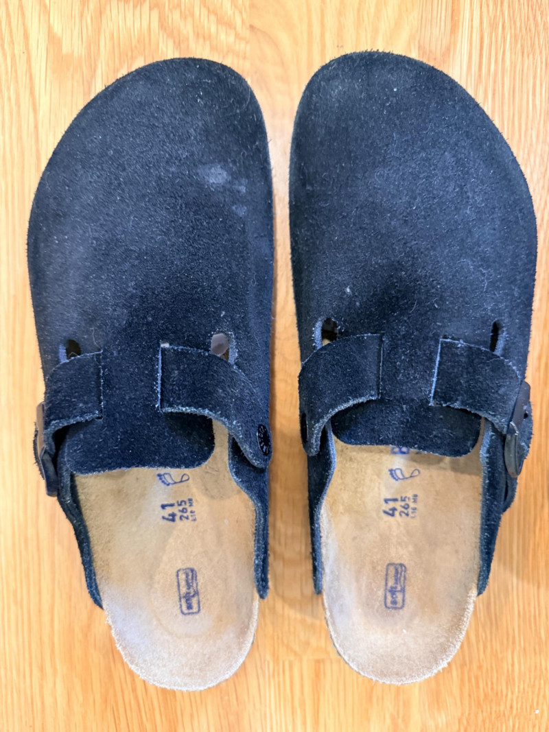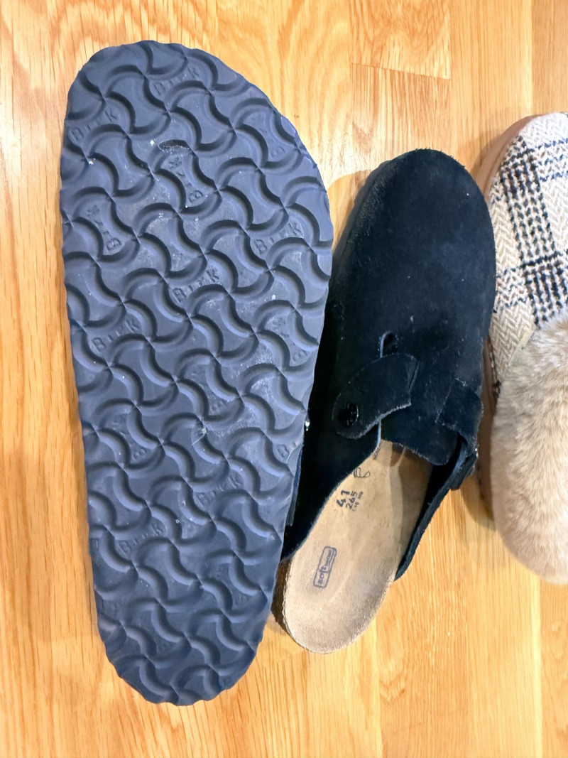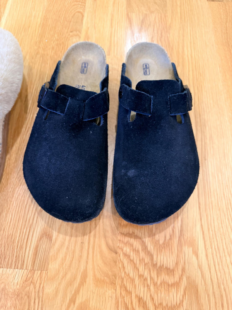 Black Suede Birkenstock Shoes & Dearfoam Slippers Birkenstock Shoes Size 41/ Ladies 10/ Mens 8 Black suede appear lightly worn. Dearfoam Slippers XL Ladies 11-12 also lightly worn.
