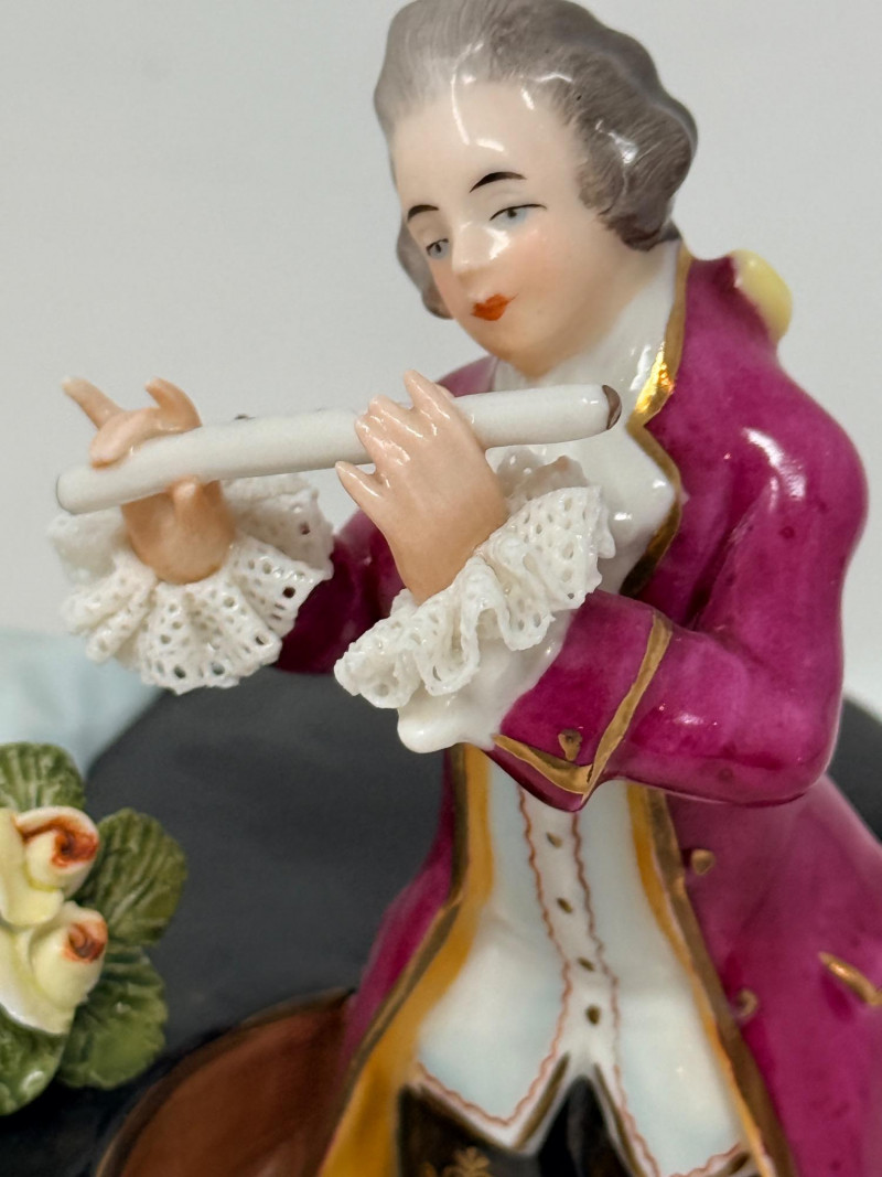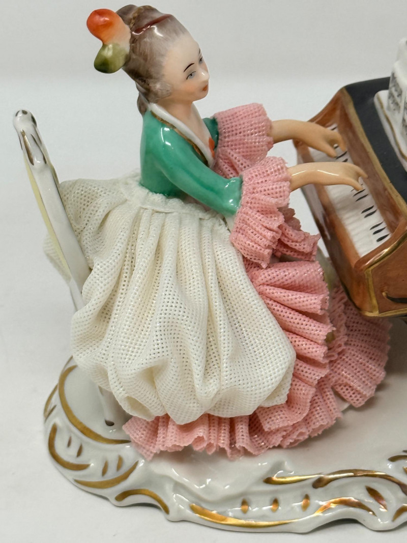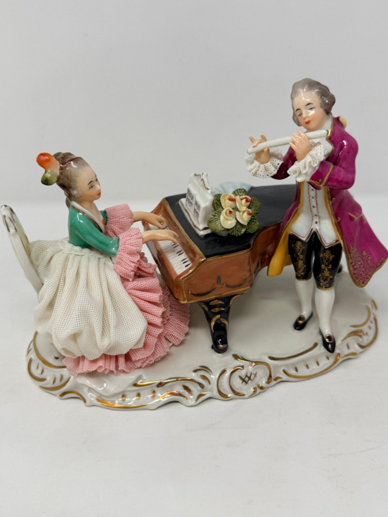 Lot # 43 - Vintage Alka Dresden Lace Porcelain Musicians Figurine