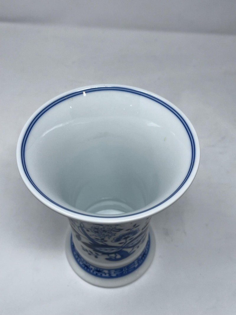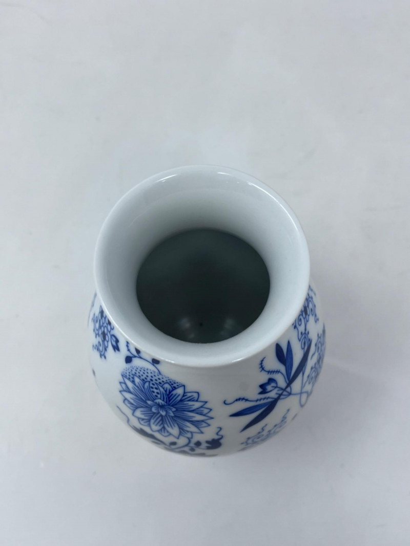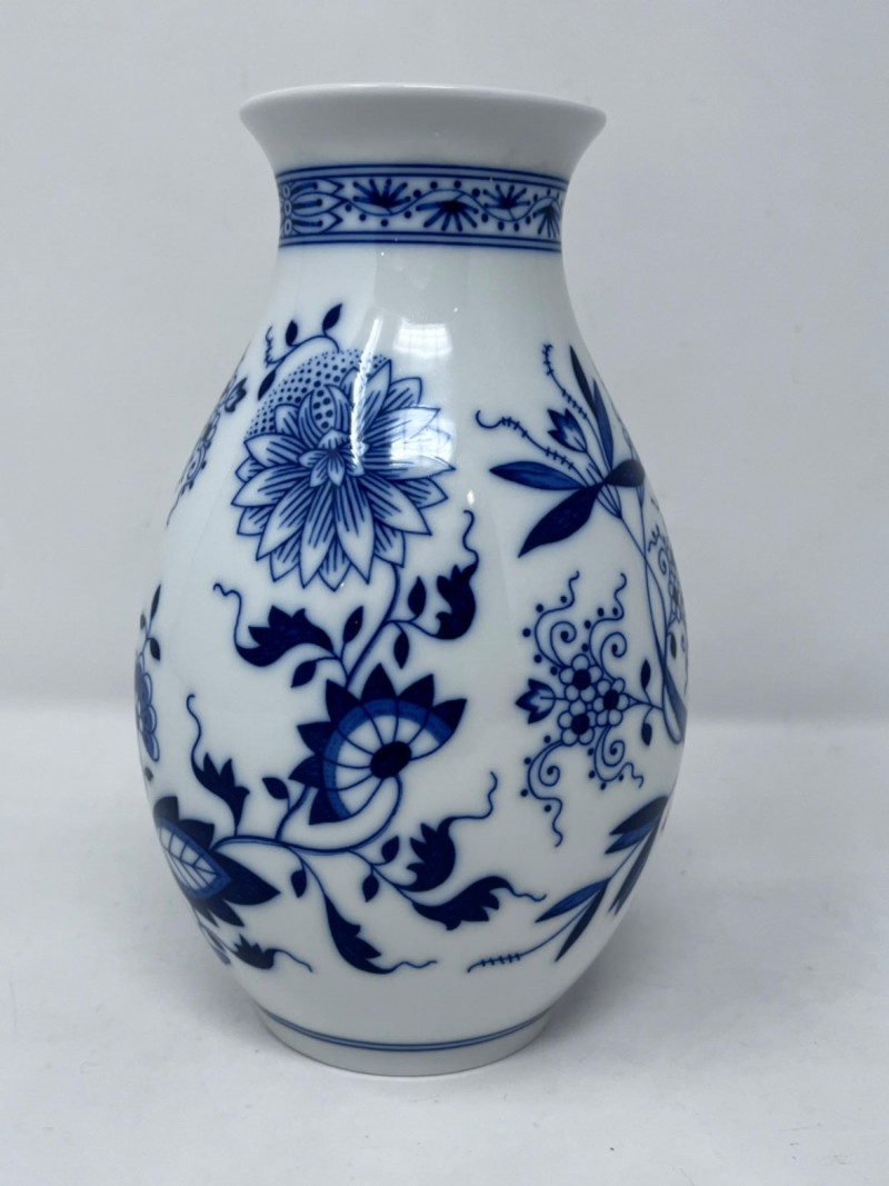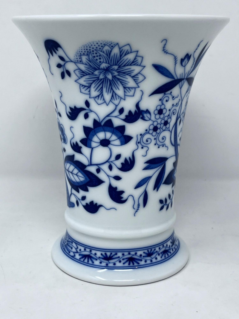 Hutschenreuther Porcelain Vases & Salt and Pepper Shakers These are Hutschenreuther porcelain vases and slay and pepper shakers in the classic "Blue Onion" (Zwiebelmuster) pattern. Features the traditional cobalt blue and white Chinoiserie-style pattern. Largest vase is 6.5”x4.5”. Salt and pepper shakers are 2 1/4”.