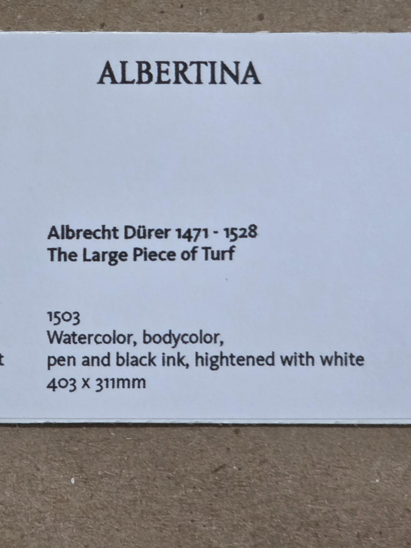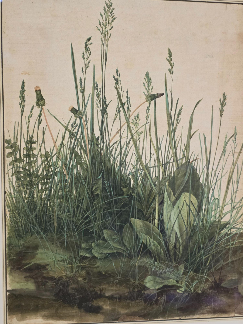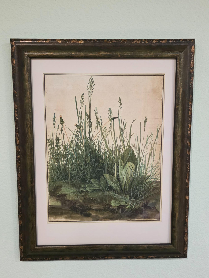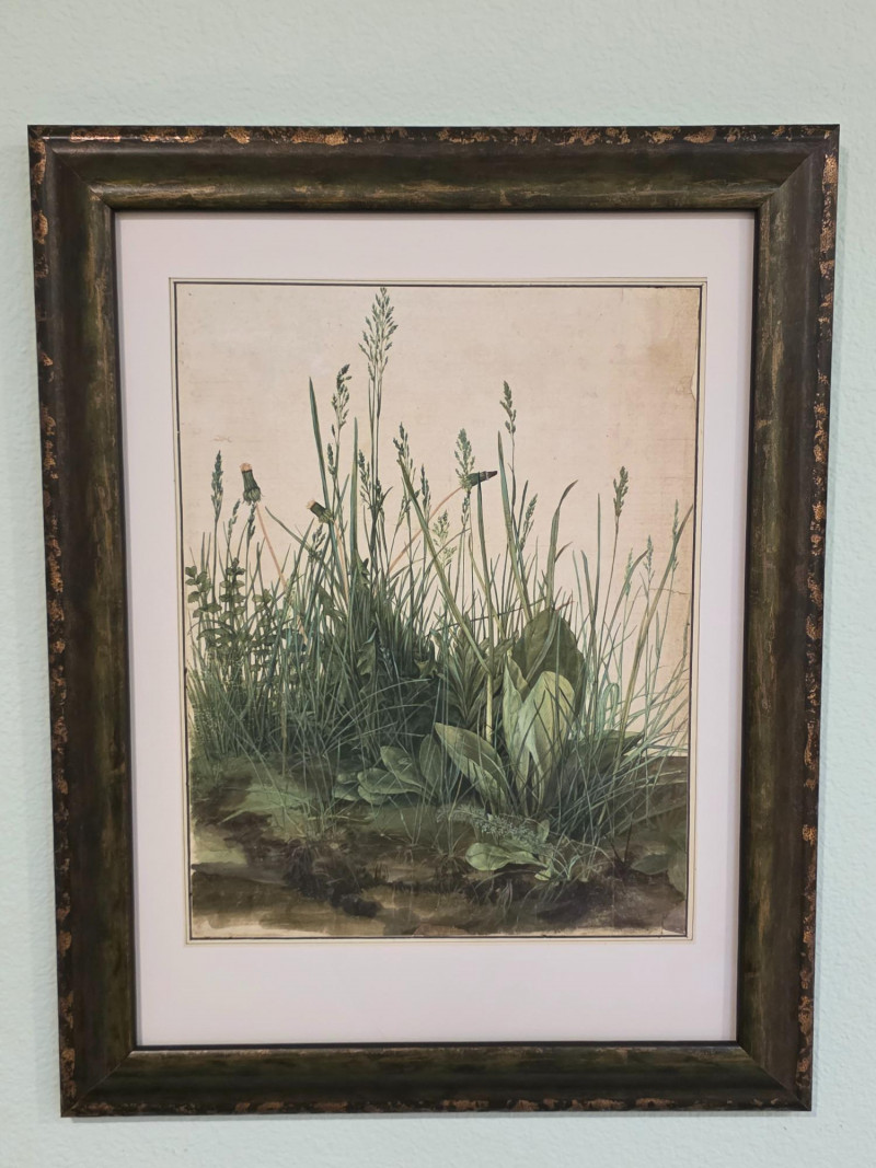Framed Print Of "The Large Piece Of Turf" By Albrecht Dürer (1503) Albrecht Dürer was a German painter, printmaker, and theorist of the Northern Renaissance. He is widely considered to be the greatest artist of the Renaissance in Northern Europe This detailed watercolor and gouache painting showcases his keen observation of the natural world, meticulously rendering various grasses, plants, and even insects Beautifully framed & matted with museum glass! 18.5"T x 14.5"W Purchased directly from the Albertina Museum in Vienna, Austria