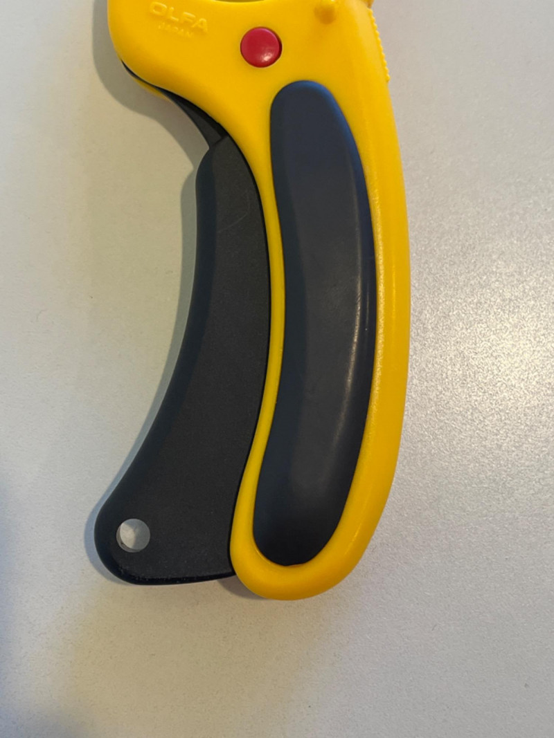 The blade is self-retracting and only exposed when the handle is squeezed.