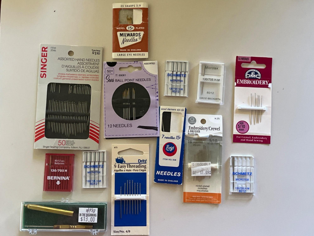 Schmetz, Bernina, and Microtec 130/705 H sewing machine needles.
