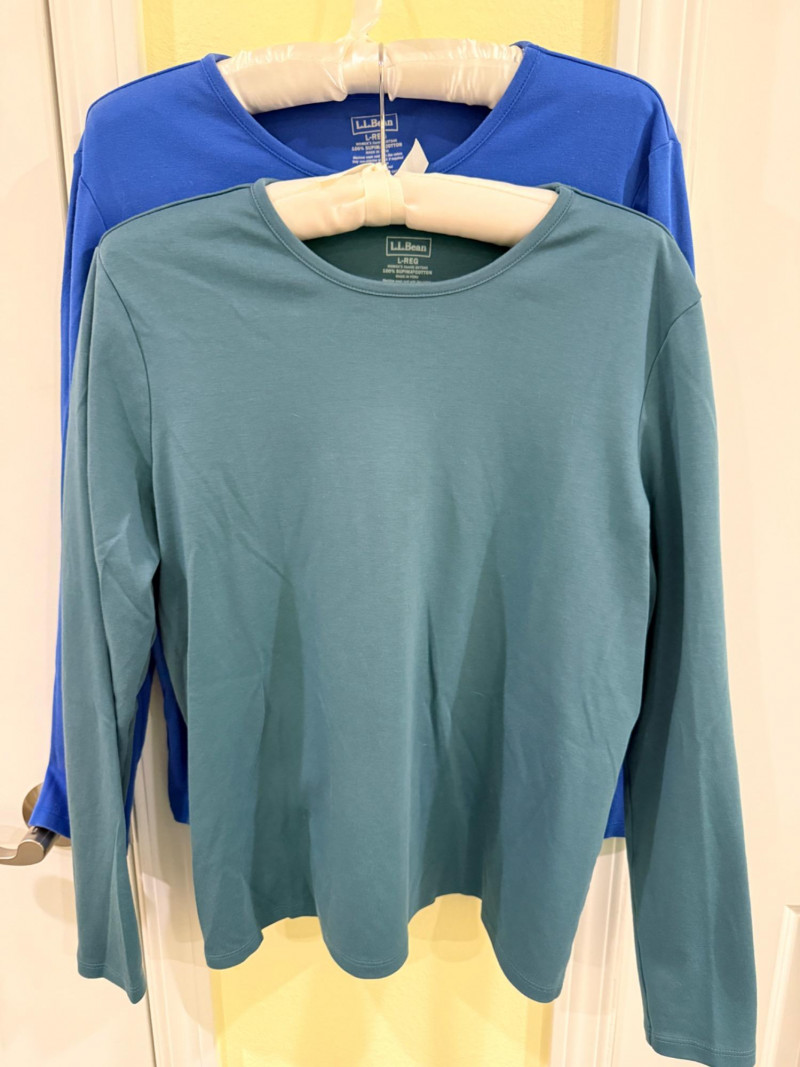 (9) Crew Neck LL Bean Long Sleeve 100% Supima Cotton Shirts All like new. Bright colors, no fading.