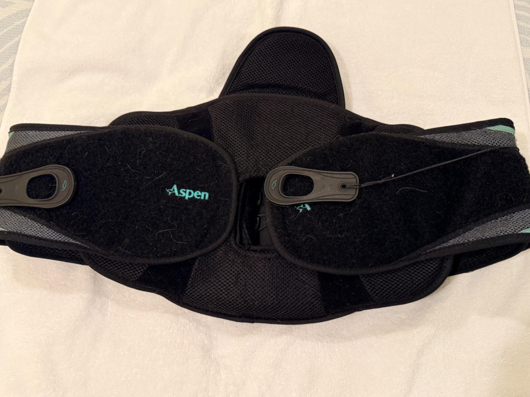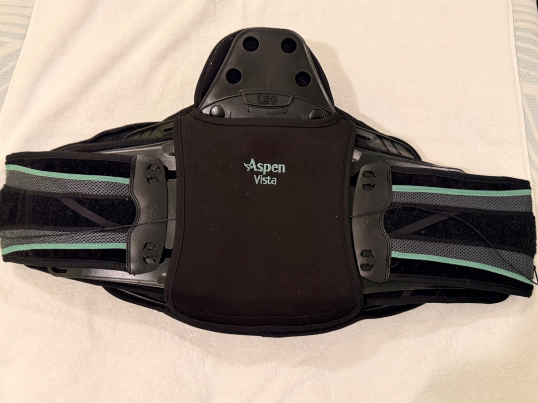 Aspen Vista 637 LSO Back Brace. This medical-grade device is designed for post-operative recovery and to reduce loads on intervertebral discs.