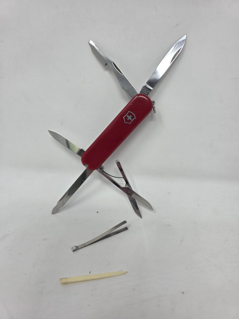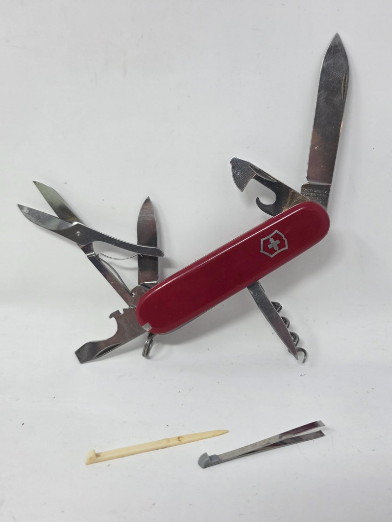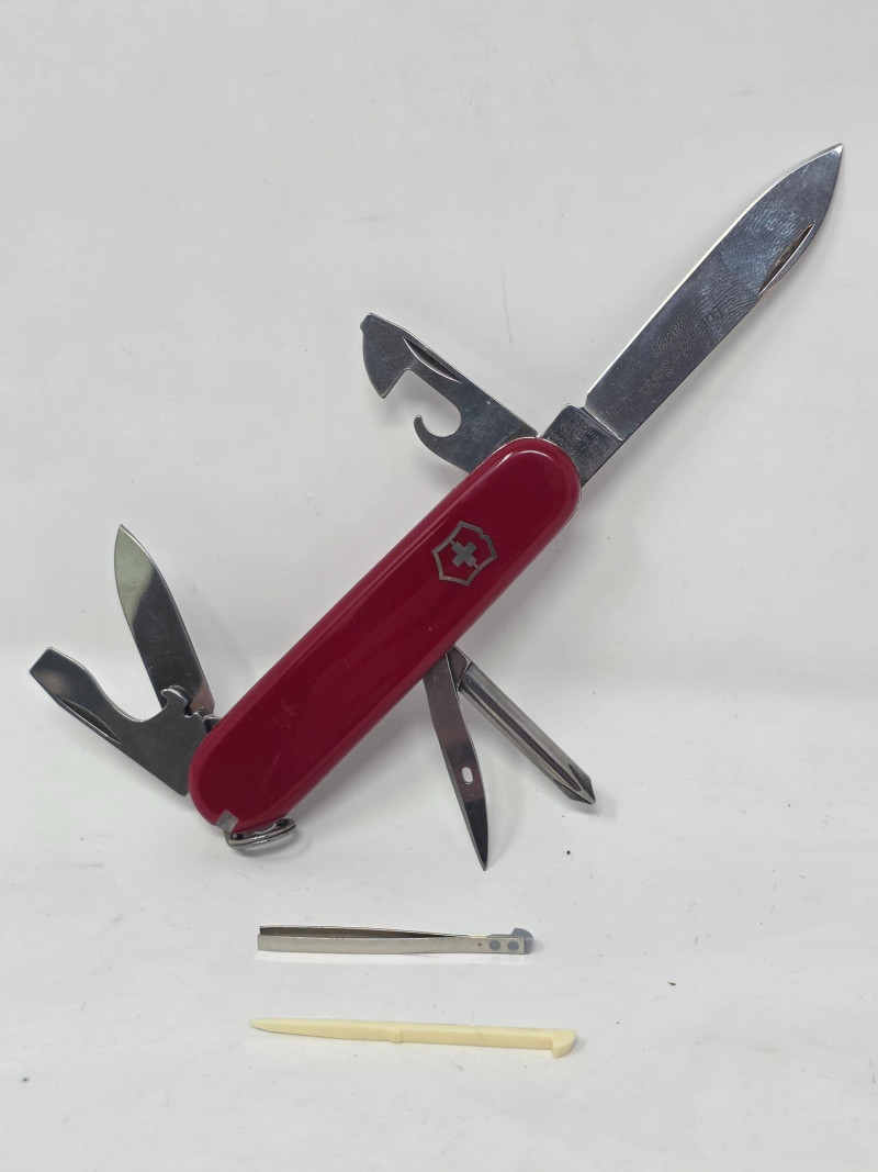 (3) Original Victorinox Swiss Army Knives Each knife contains many tools including: Knife blades, screwdrivers, leather punch, scissors, cork screw, toothpick, tweezers and much more! All 3 appear to be in good working order See pics for condition and features of each knife One knife in original box with manual!