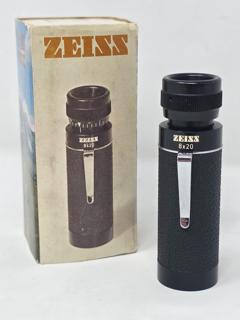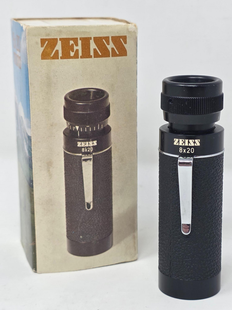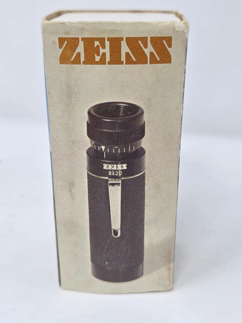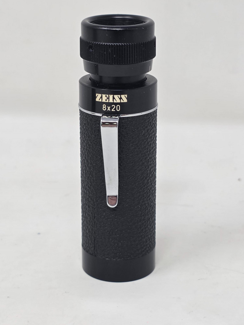 Vintage Carl Zeiss 8x20 T* Pocket Monocular Manufactured in West Germany in the 1970s This Zeiss 8x20 T* Mono is a compact and high-quality collectible optical device from a renowned manufacturer Features a lightweight, splashproof design with T* multi-coating for enhanced light transmission and contrast. Offers 8x magnification with a 20mm lens diameter, ideal for theater, sporting events, or outdoor observation. Includes a pocket clip and is designed for portability, making it a popular choice for quick, detailed viewing Includes original box, zipper case, handwritten date of 1973 (possible purchase date) Appears to be in excellent condition, see pics Tested - Works! 3.5"L x 1"W