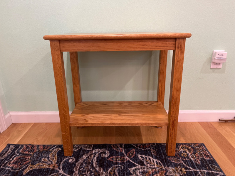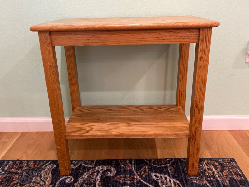 Oak Side Table Straight rectangular legs. 24”x14”x24.5”