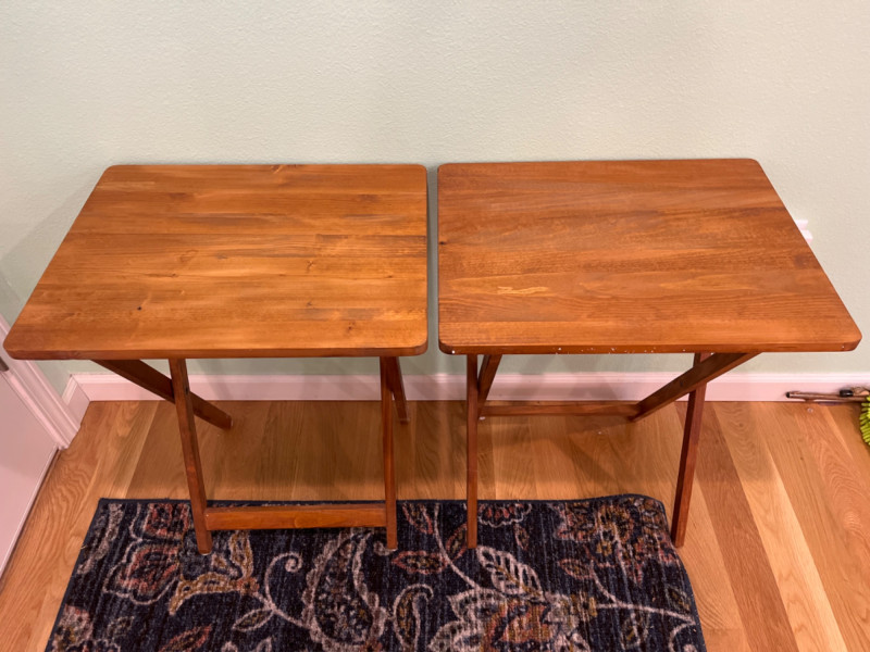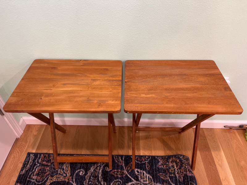 (2) Folding Wood TV Tray Table Light for easy movability. 19.5”x15.5”x24.5”