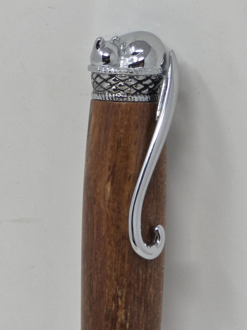 Lot # 136 - Handcrafted Wood Ballpoint Twist Pen Featuring a Cat-Themed Design