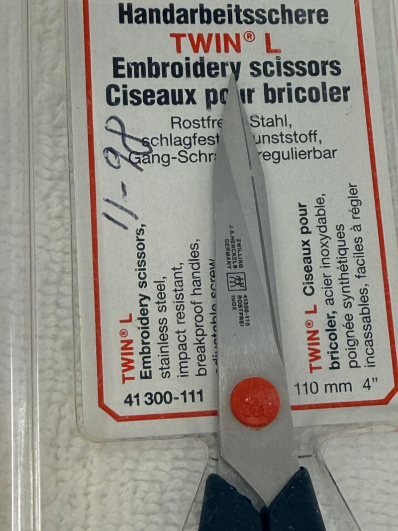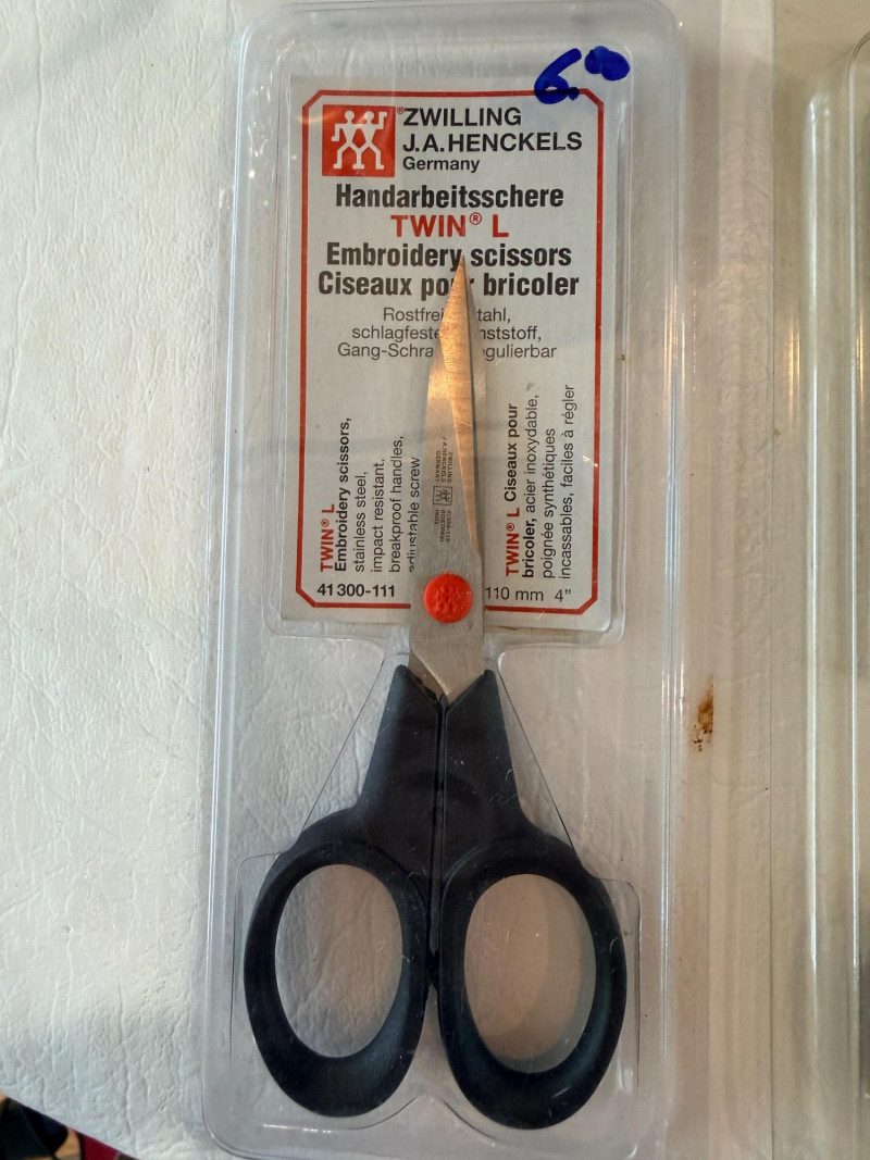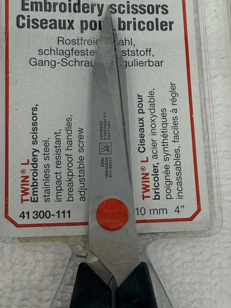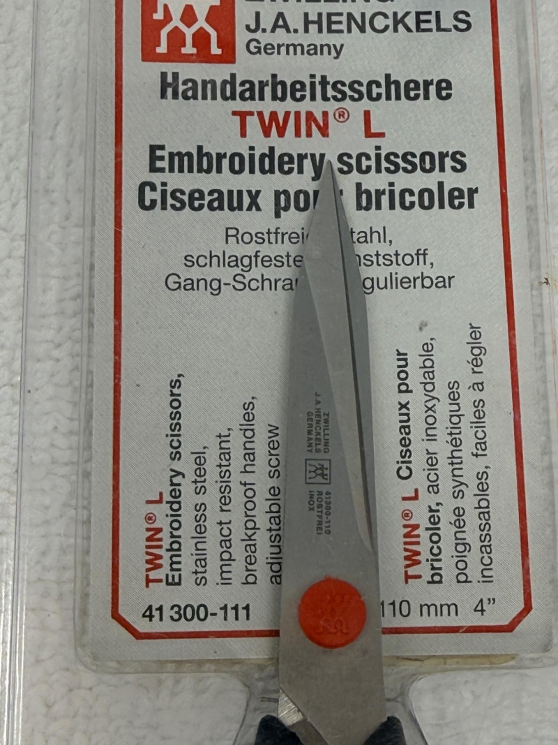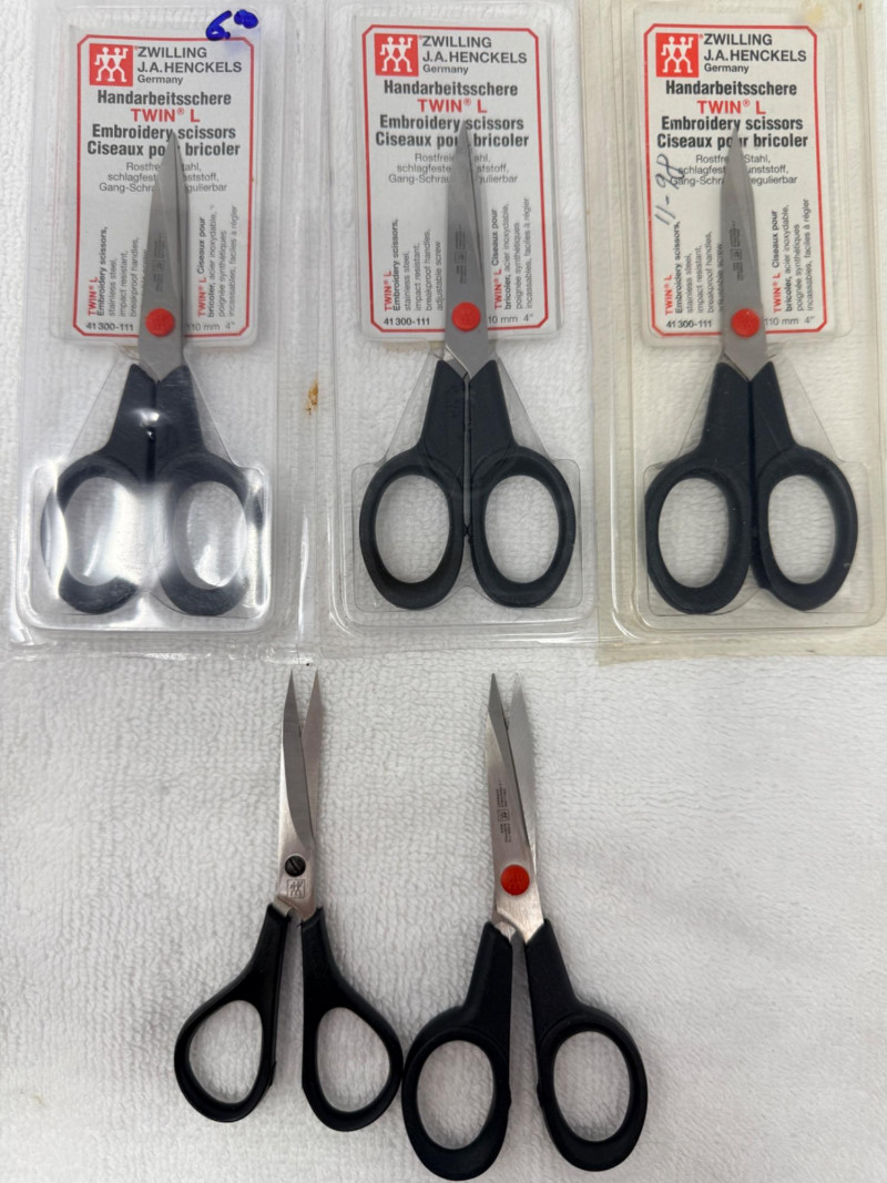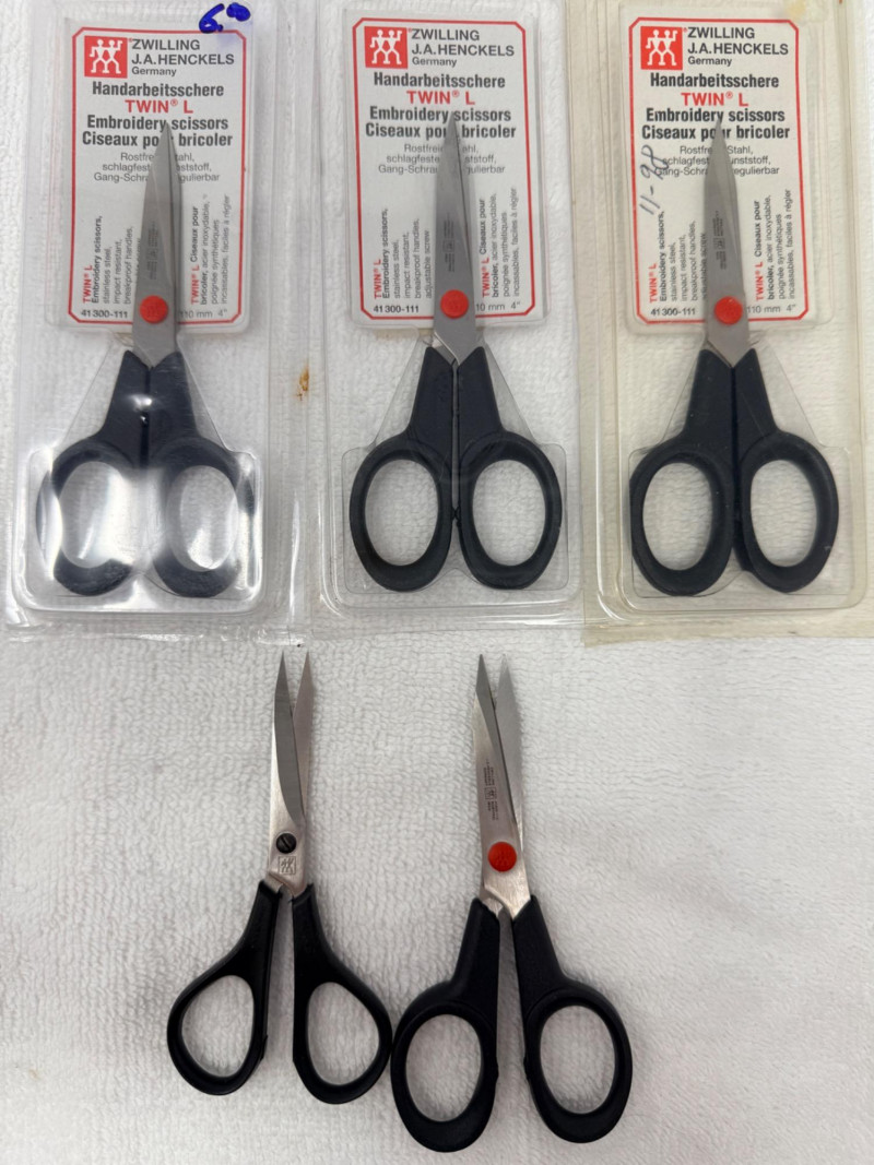 (5) Zwilling J.A. Henckels Twin L Embroidery Scissors, model number 41300-111. (4) 4” (1) 3.5”