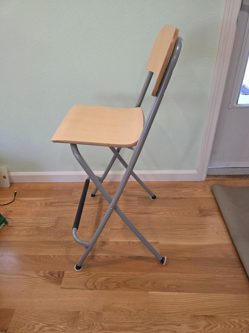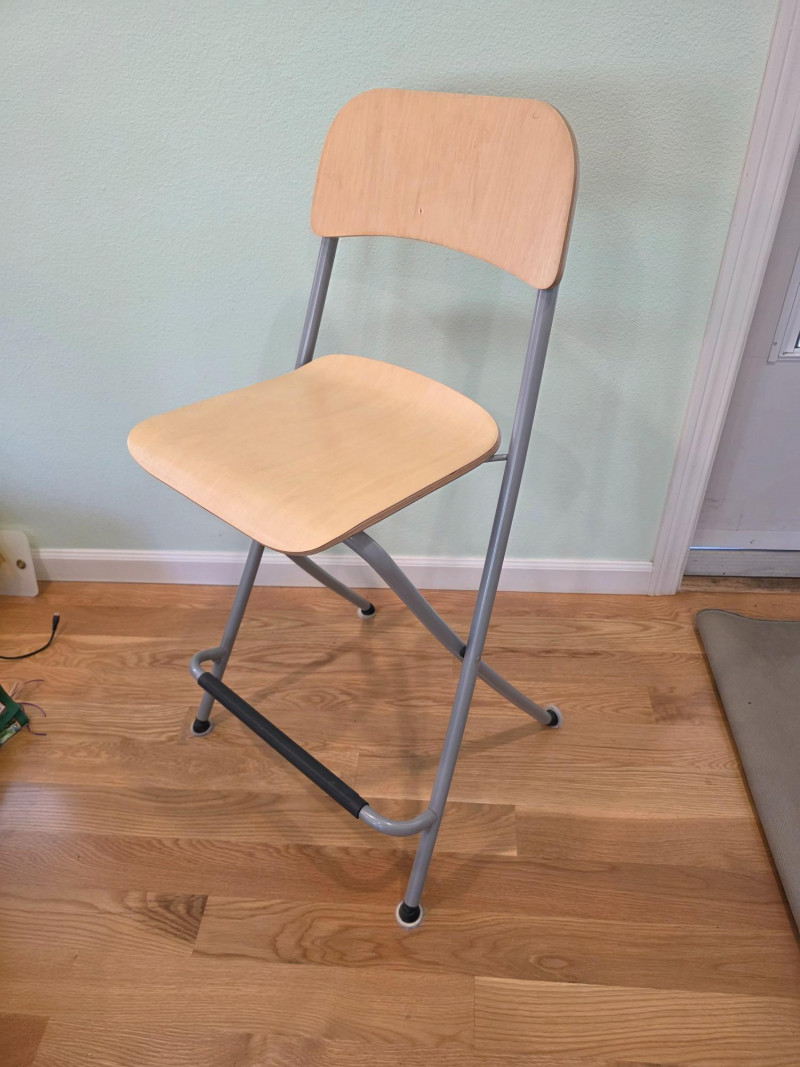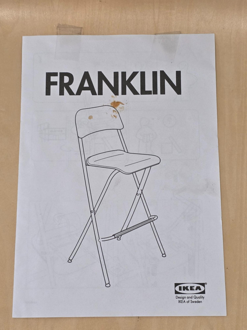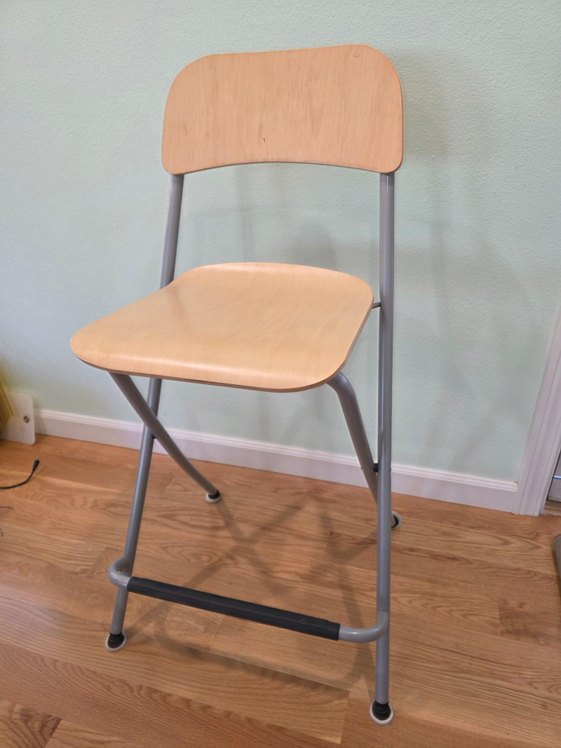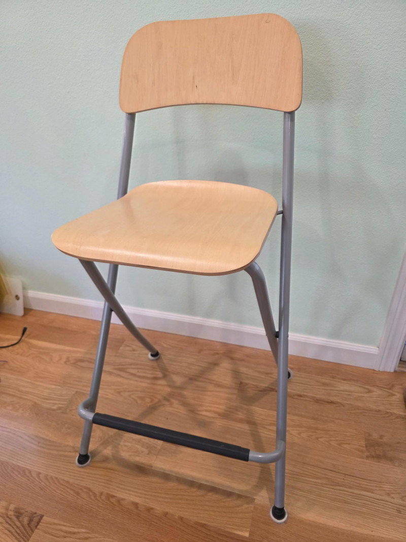 IKEA Franklin Folding Bar Stool IKEA Franklin bar stool is a foldable, counter-height chair featuring a birch effect seat and backrest with a steel frame In good condition! 36.5"T x 20"W x 17"D