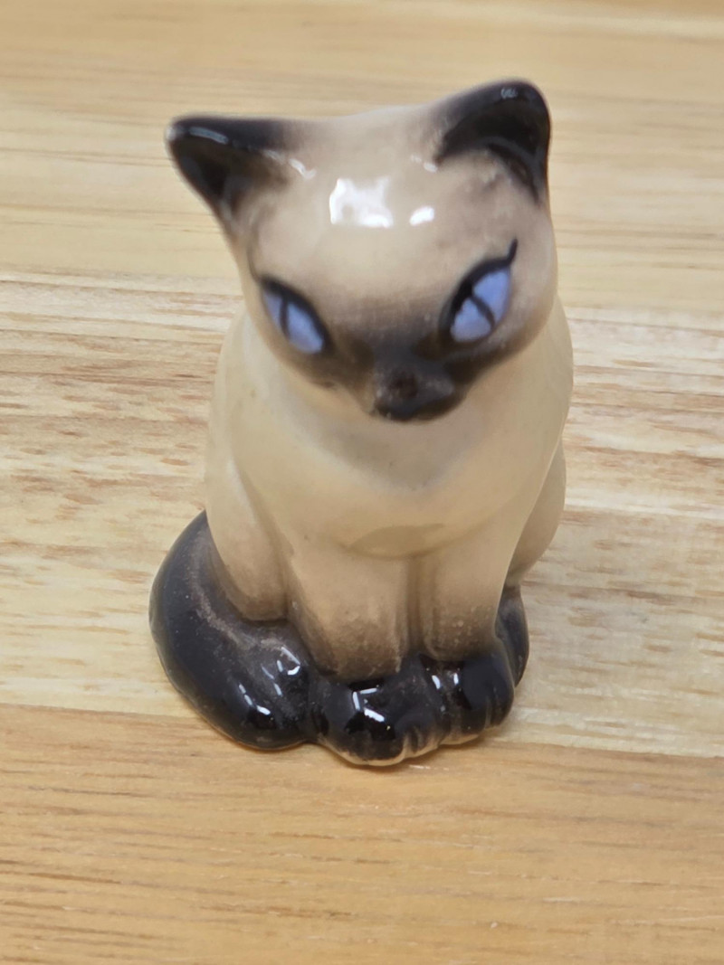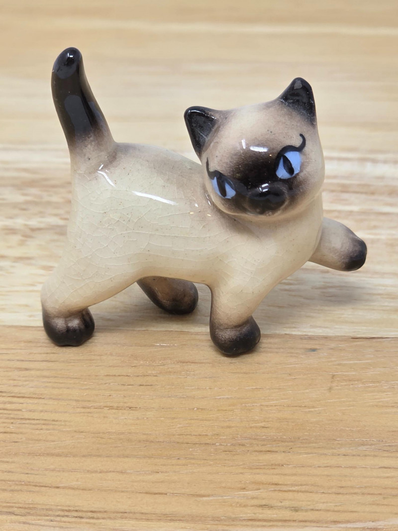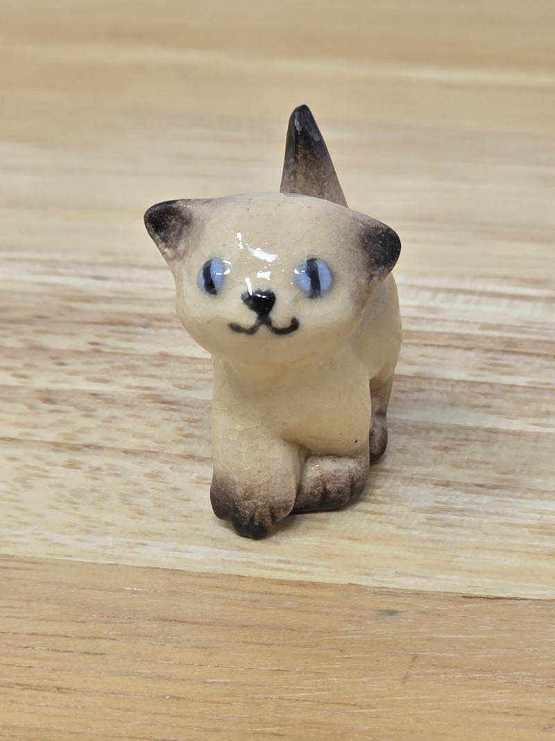 (6) 1980s Hagen-Renaker Mini Siamese Cat Figurines Crafted from porcelain or bone china and are often hand-painted with characteristic blue eyes and "seal point" markings Most likely produced in Japan Mini figurines range from 1/2"T - 1 3/4"T Nice little set!