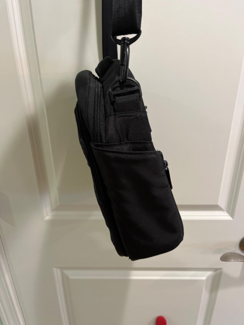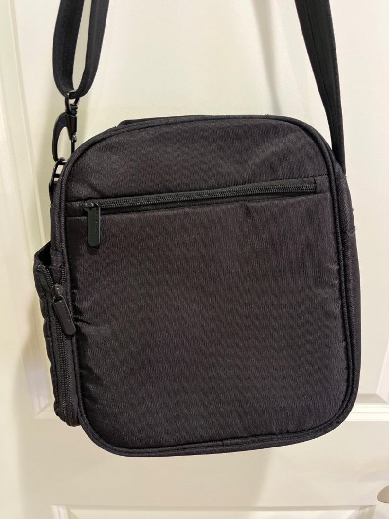 Lightweight, water-resistant 52” nylon crossbody bag designed for organization and travel.