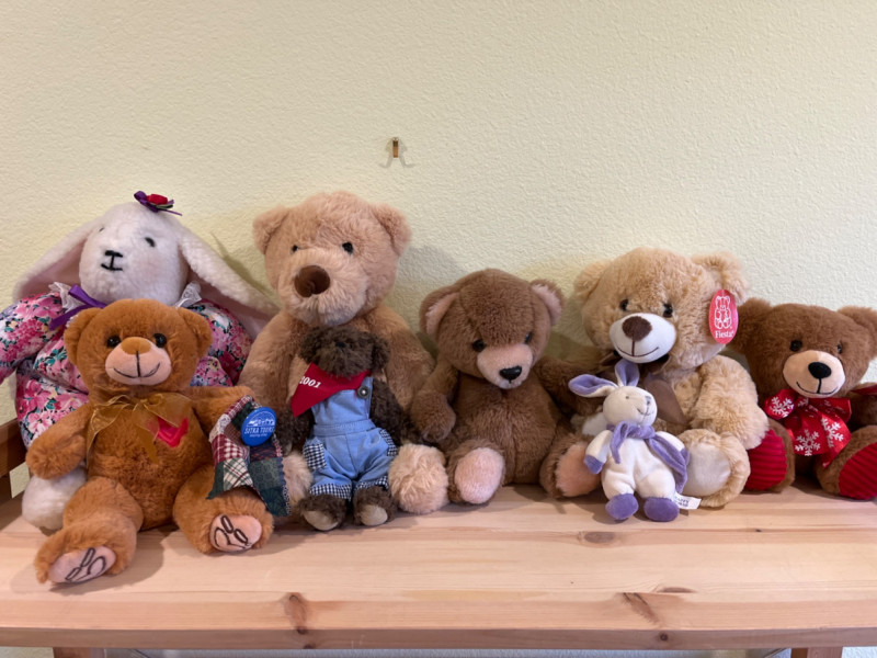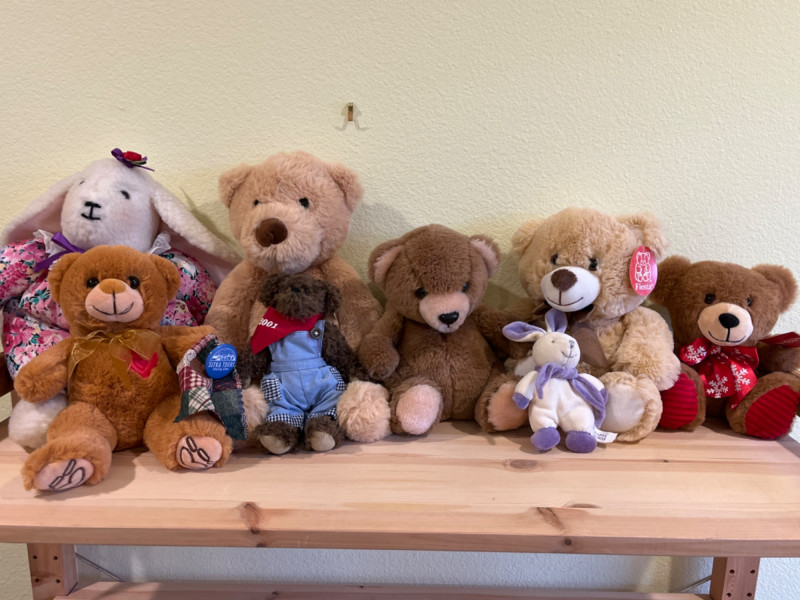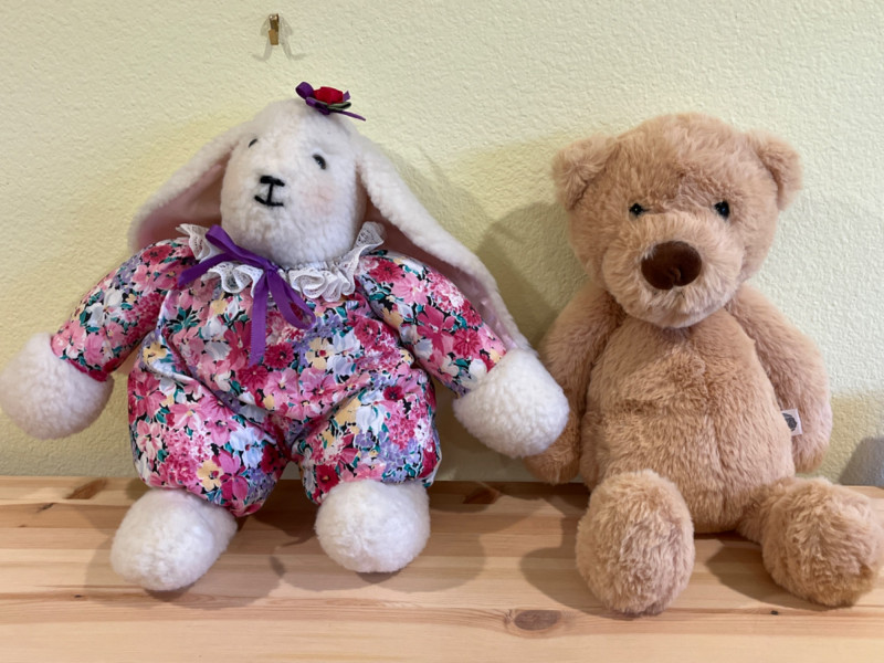 (8) Stuffed Animals Two stuffed rabbits. Come from an adult household.