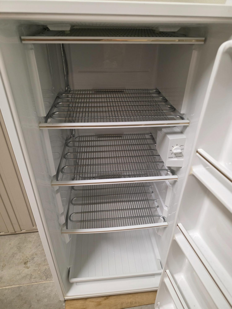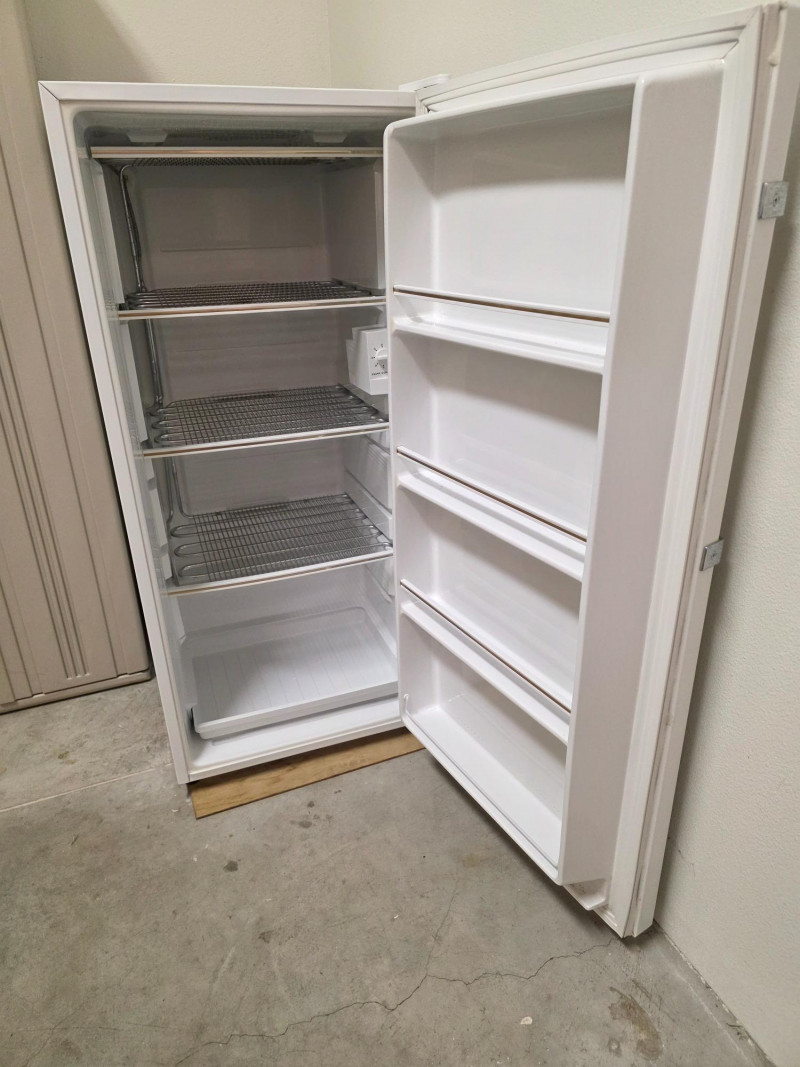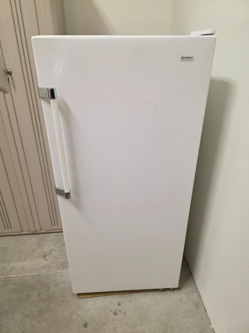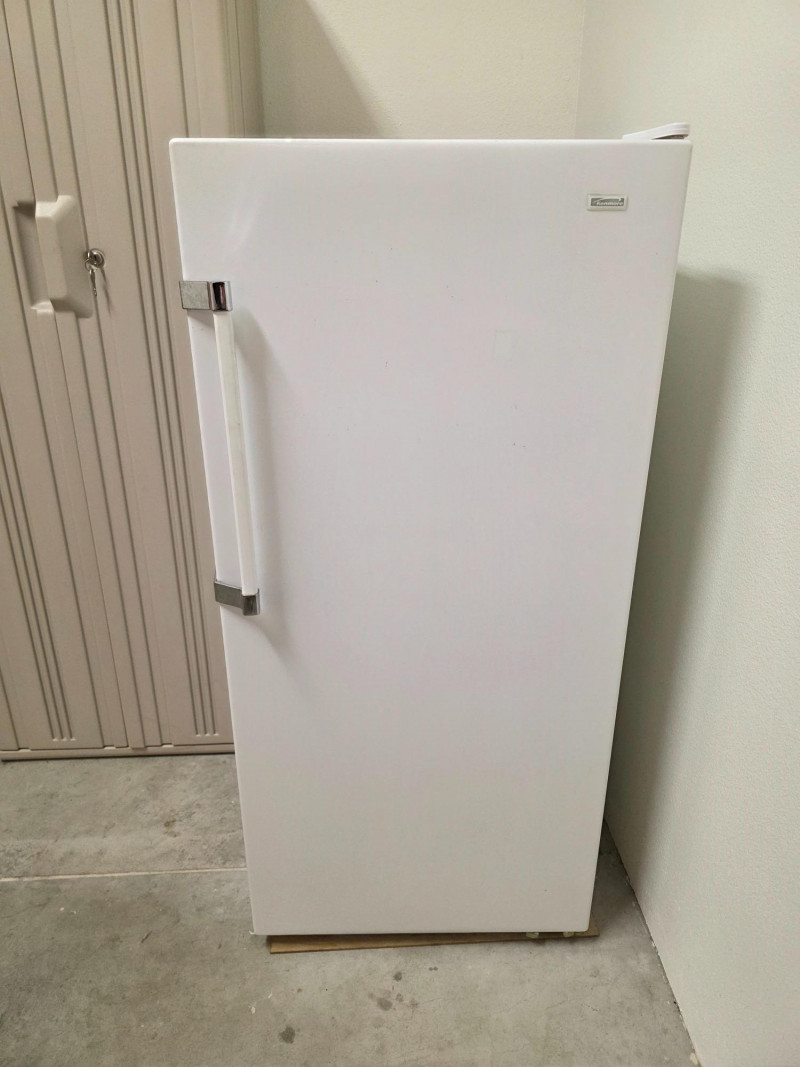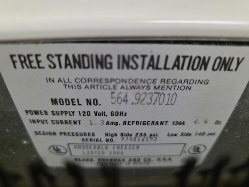 Kenmore 5.8 Cubic Feet Single-Door Upright Compact Freezer Kenmore Model #564.9237010 This compact, freestanding model typically used for supplemental food storage in kitchens, basements, and garages Operates on standard 110V/115V electrical current Adjustable leveling legs for stability on uneven floors Includes 3 wire shelves for organized storage Very clean inside! Tested - Works! 46.5"T x 21.25"W x 25"D