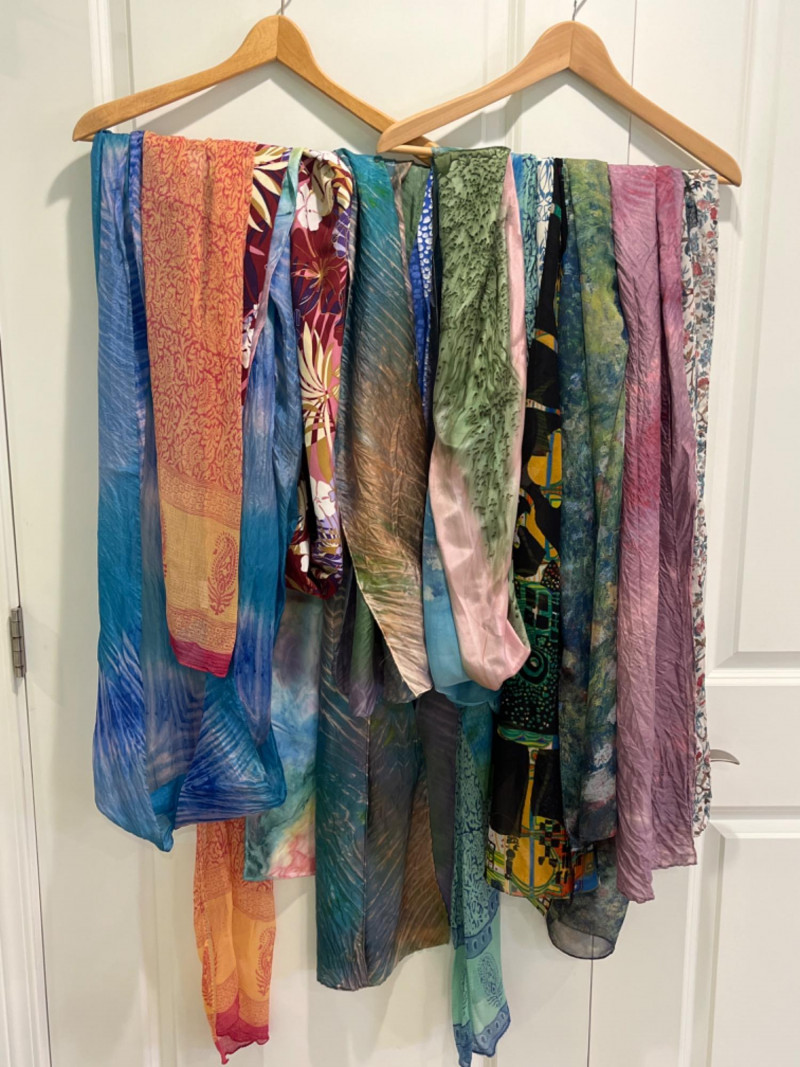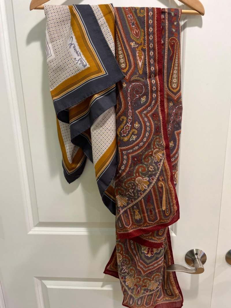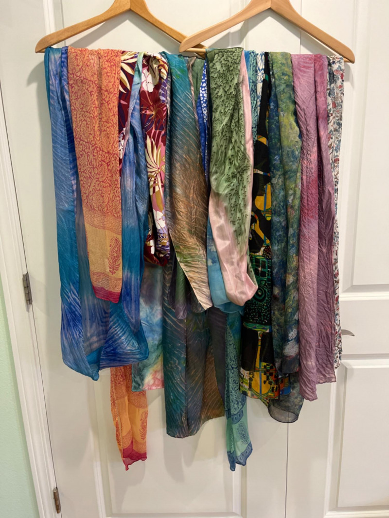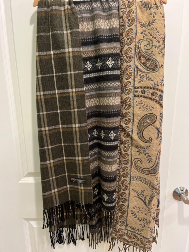 (2) Cashmere Scarves and (24) mostly silk scarves (26) Scarf Collection Two plaid 100% cashmere scarves. A scarf for every occasion!