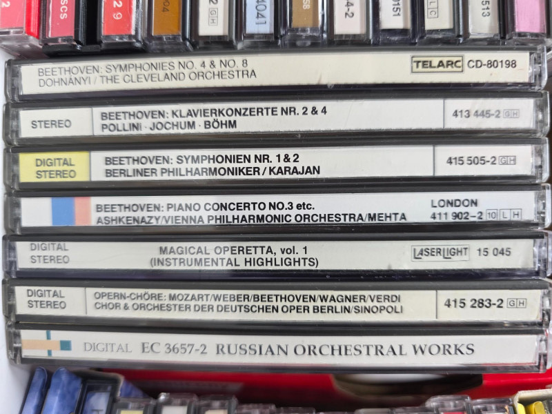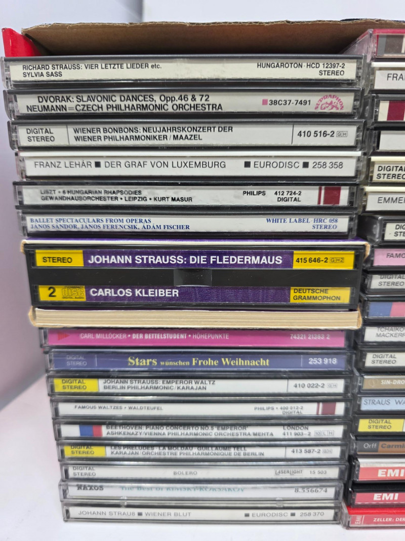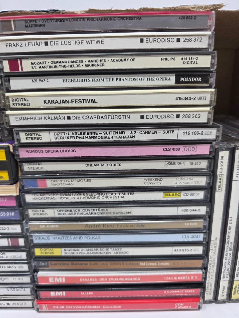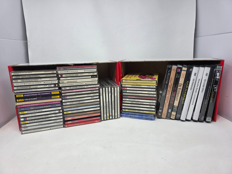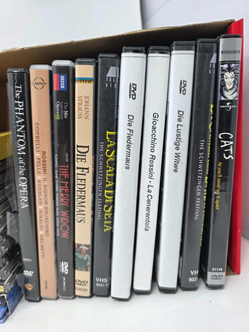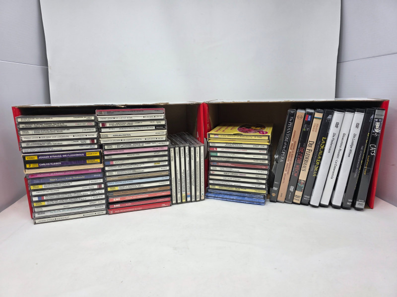 Classical CDs & Small DVD Collection (55) Classical Music CDs Strauss, Beethoven, Rossini, Dvorak, Brahman and many more! (10) DVDs The Phantom Of The Opera, Cats, The Merry Widow, Die Fledermaus, La Scala Di Seta, Rossini, Die Lustige Witwe, & La Cambiale Di Matrimonio