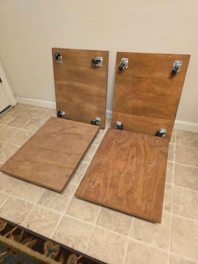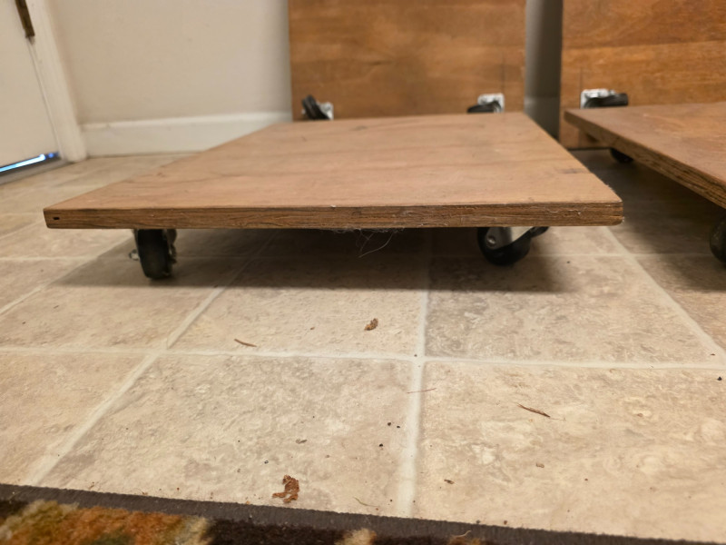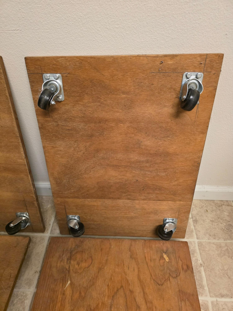(4) Wooden Platform Dolly Wooden platform dolly, often used for moving or transporting heavy furniture or boxes Deck is 3/4" plywood Four heavy duty swivel casters allow for easy maneuvering and transport.
