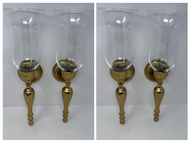 Lot # 258 - *(4) Princess House Lacquered Brass & Etched Glass Wall Candle Sconces