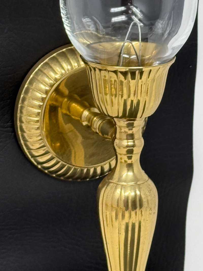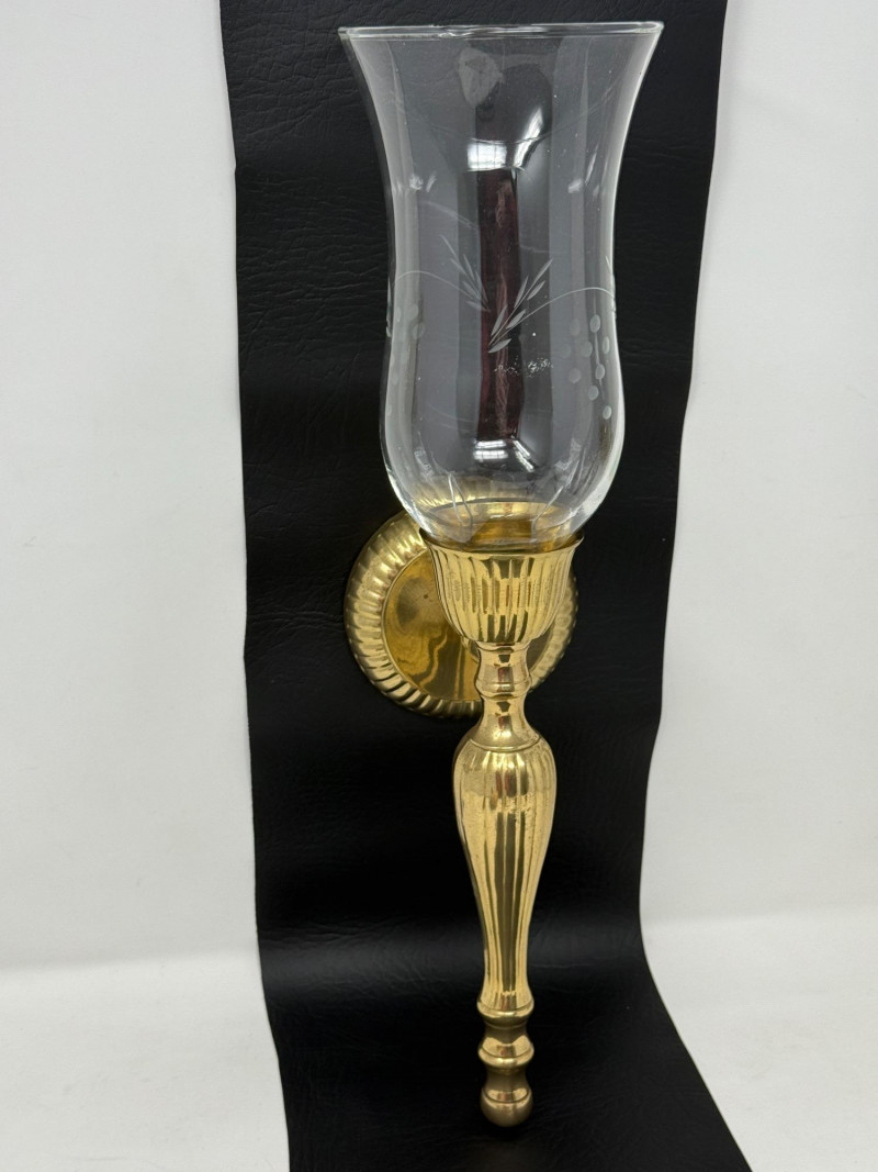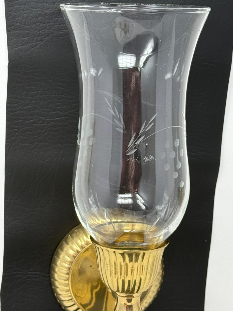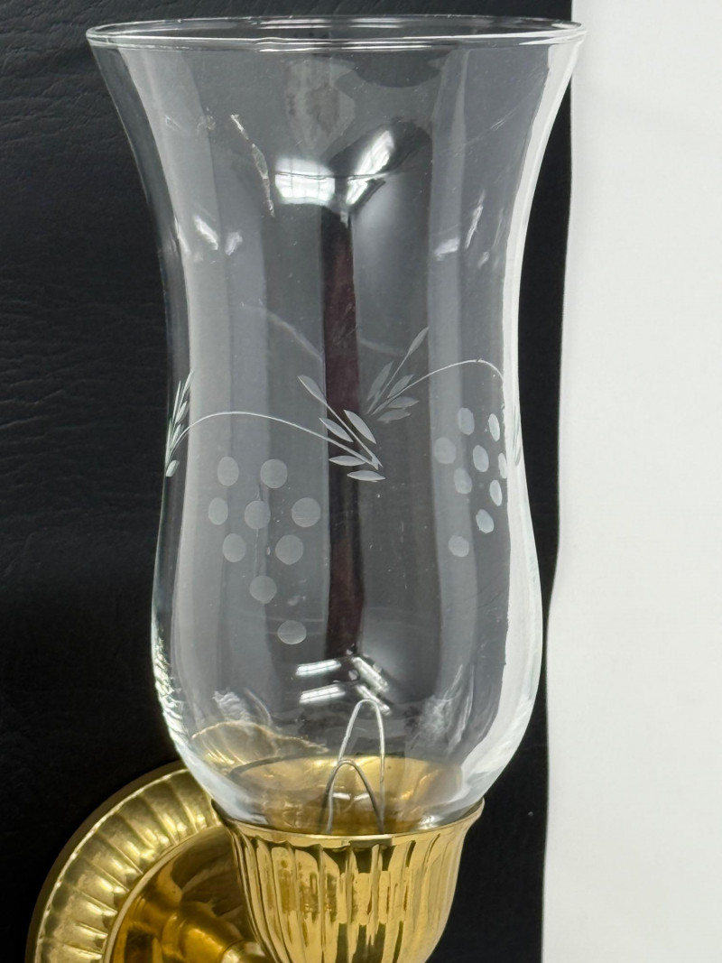 (4) Princess House Lacquered Brass & Etched Glass Wall Candle Sconces 4 sconces and 5 glass globes. Each approximately 18”x4.5”