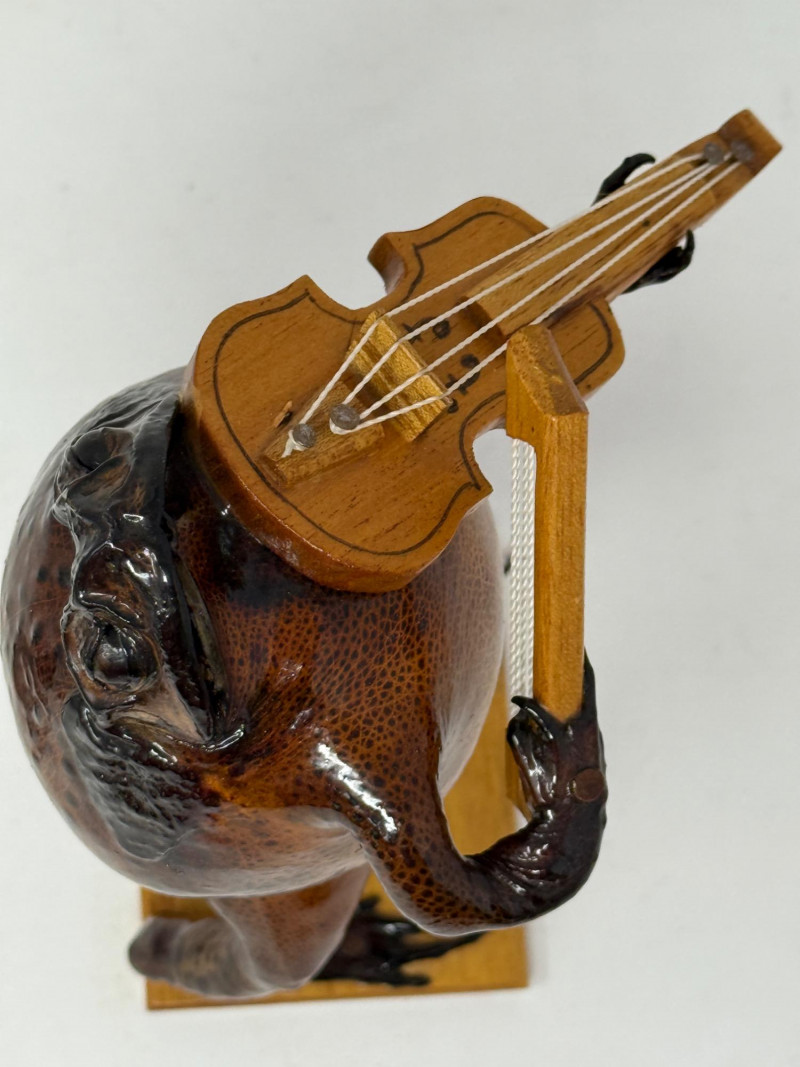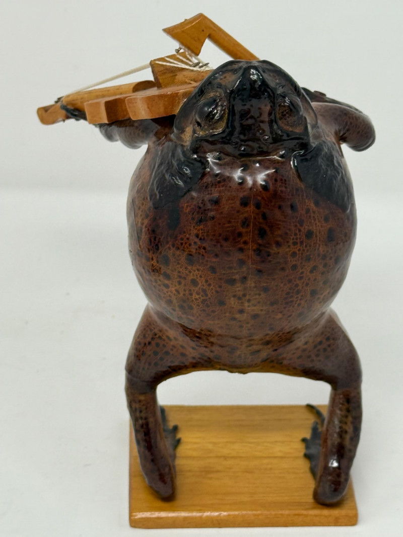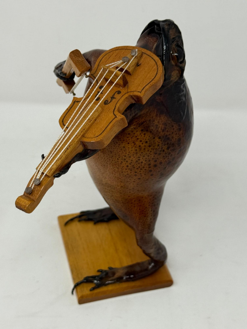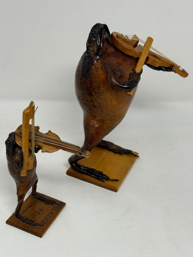 Lot # 259 - (2) Violin Playing Taxidermy Cane Toads - Mexican Folk Art