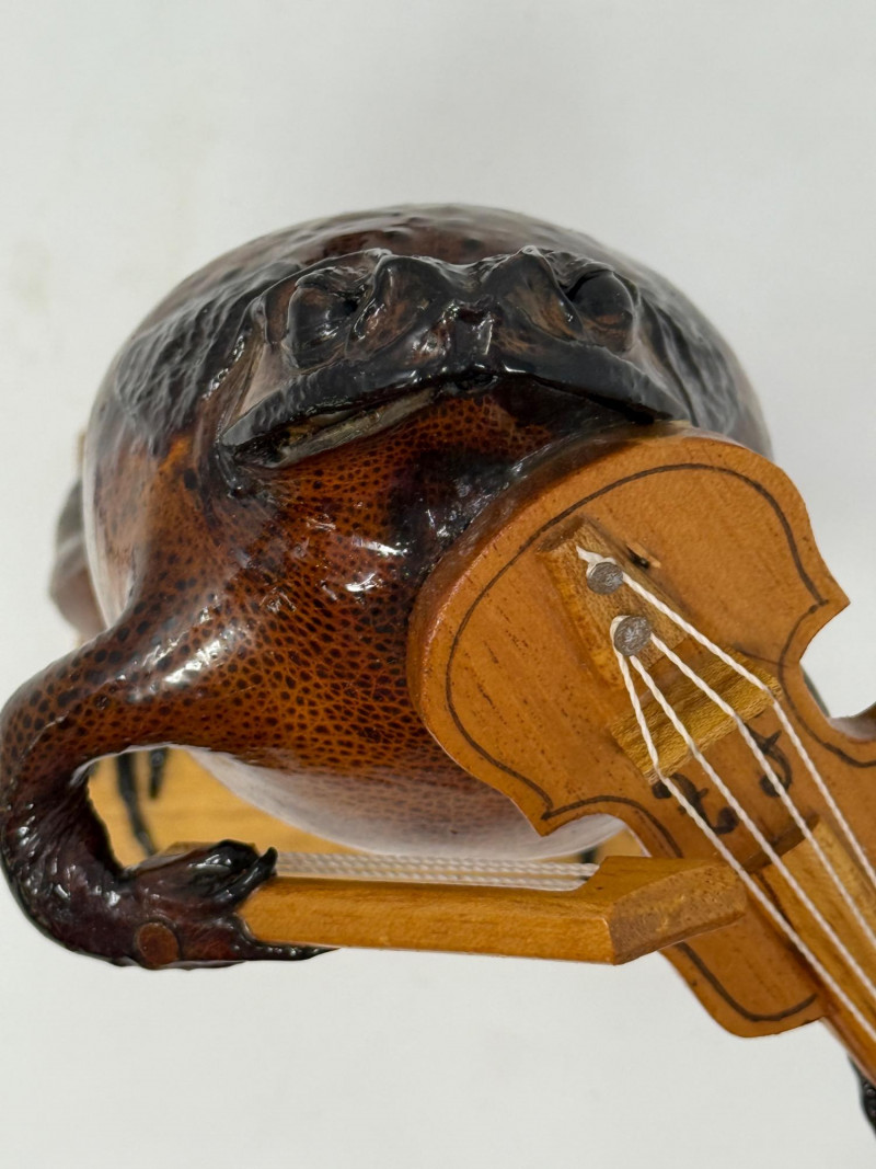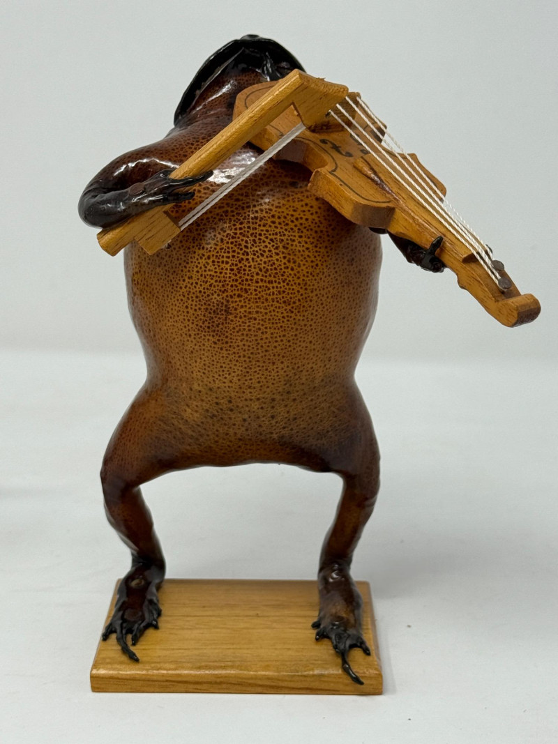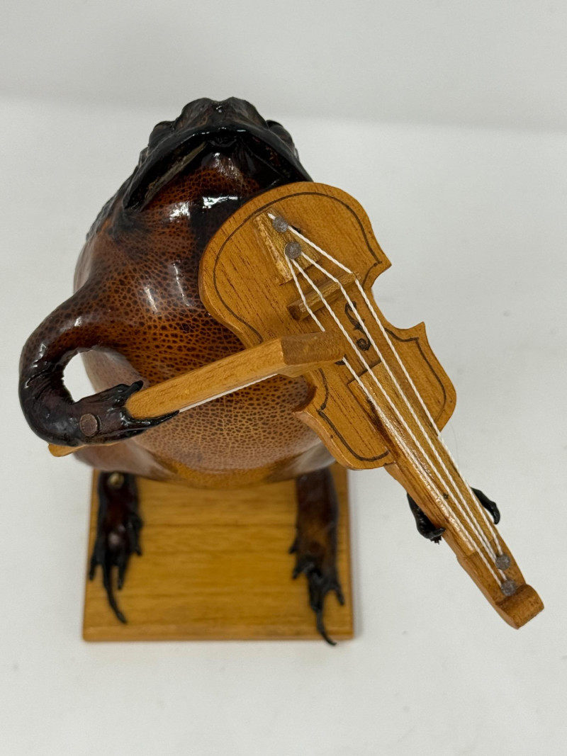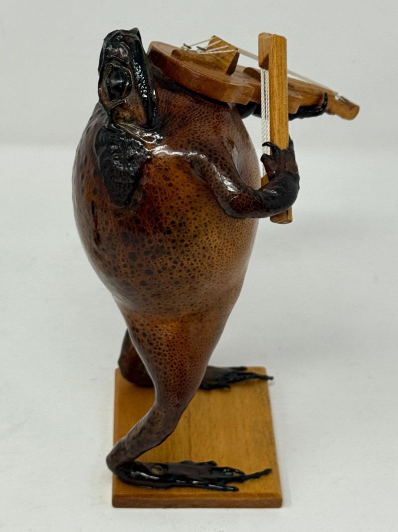 Lot # 259 - (2) Violin Playing Taxidermy Cane Toads - Mexican Folk Art