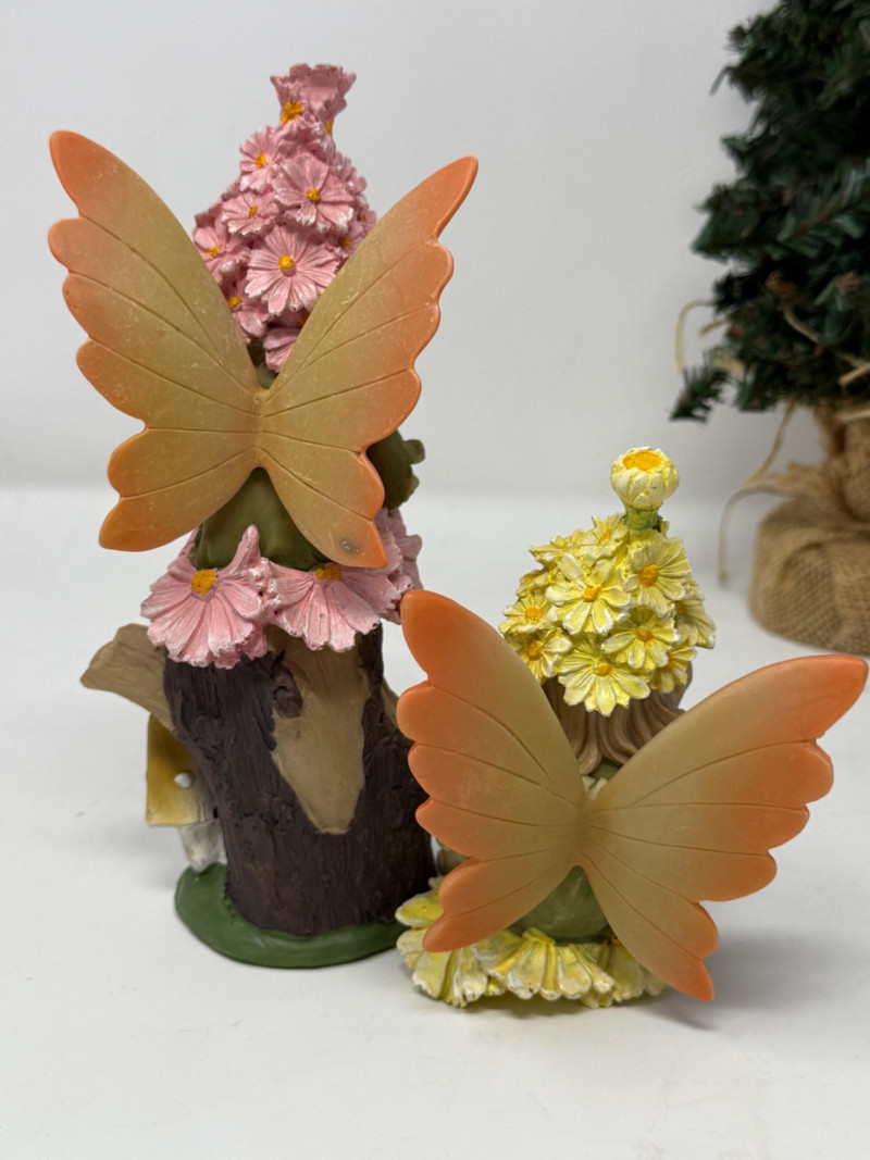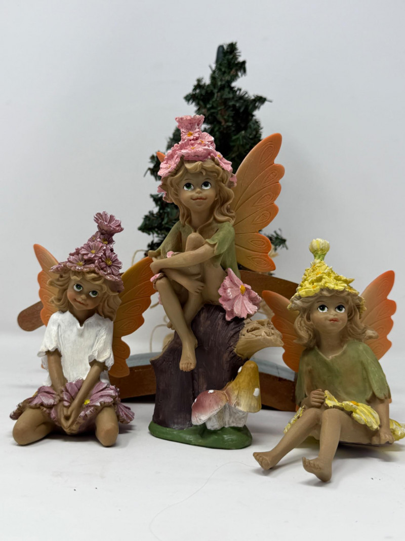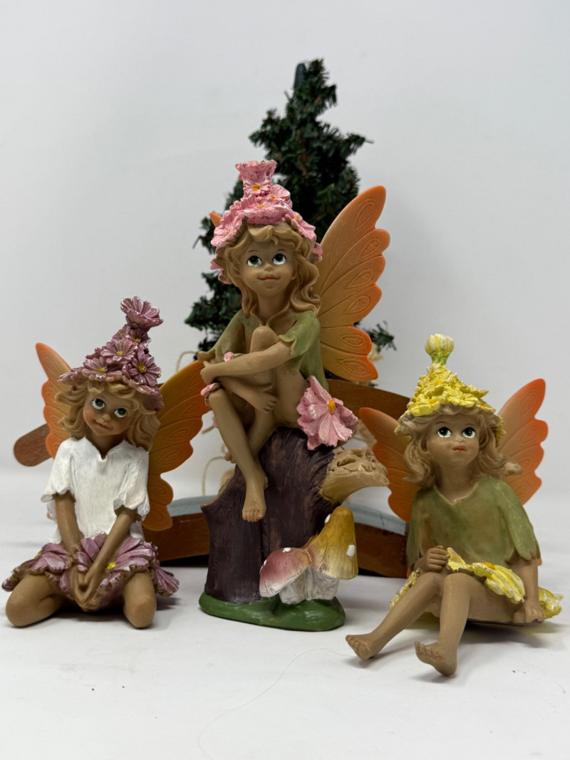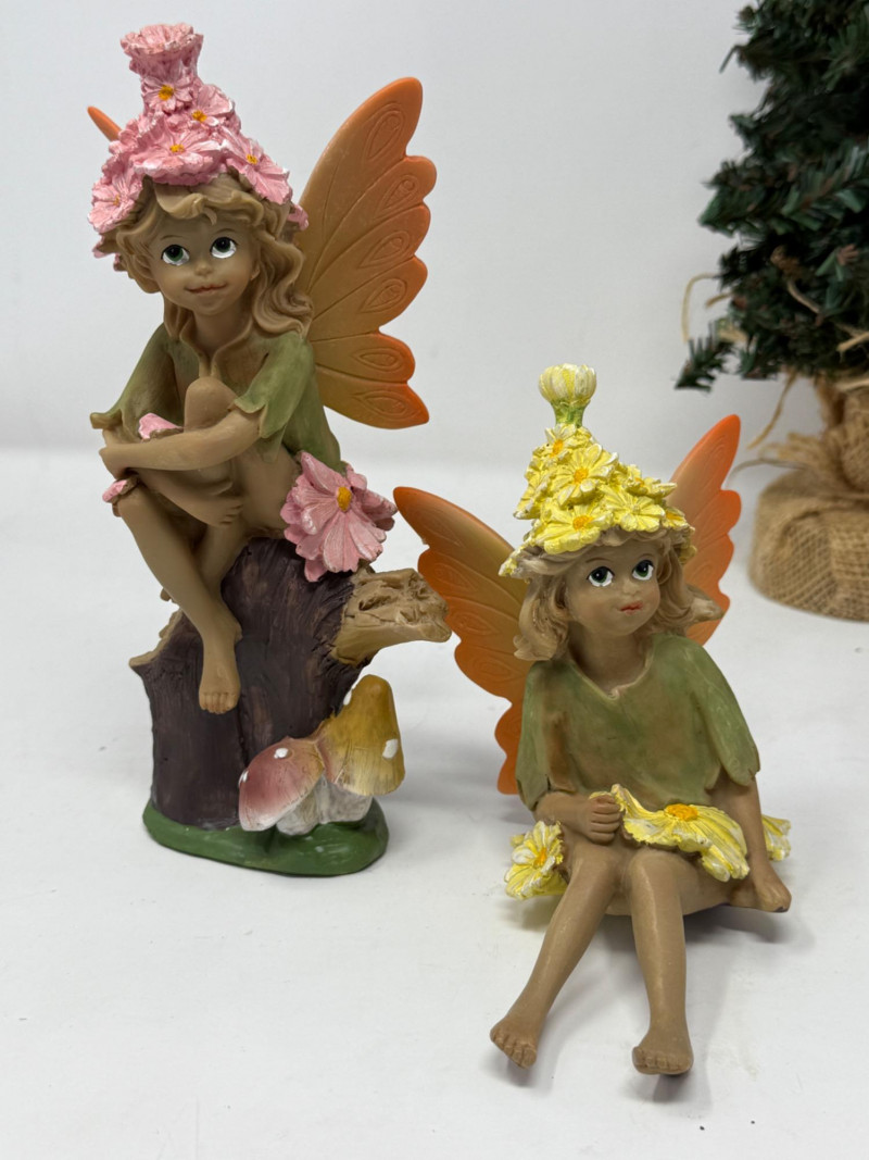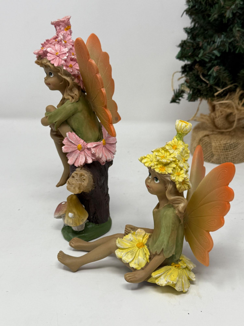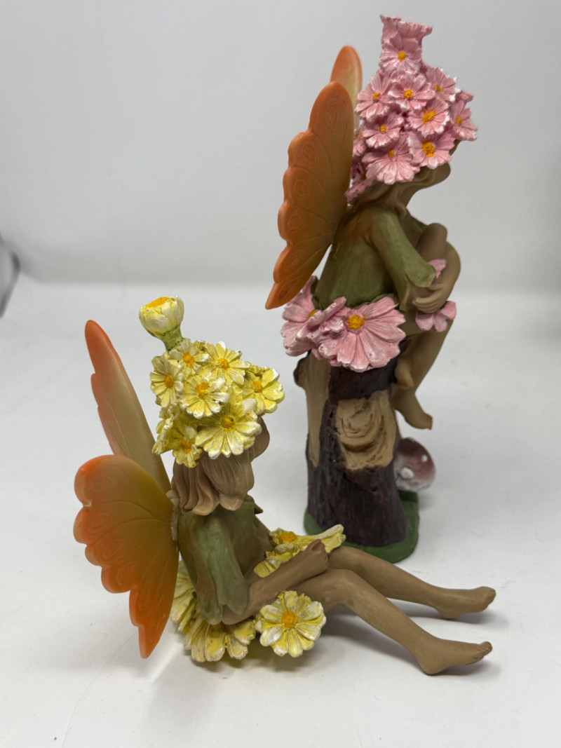 3 resin faeries for indoor or outdoors. Faux tree and wood foot bridge complete this lot.