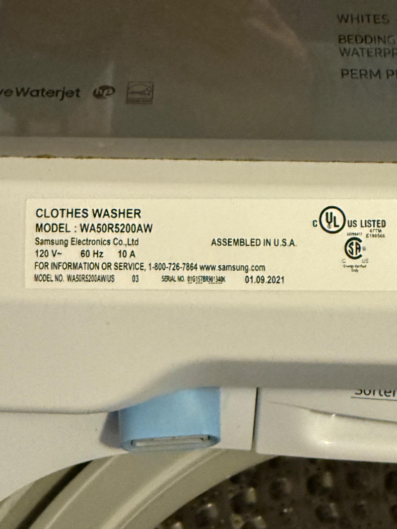 Samsung Electric Top Load Active Waterjet Clothes Washer Model WA50R5200AW Date of manufacturer is 9/1/21 Tested, works! Lowe’s Purchase Protection may be in effect. Buyer to verify. Comes with original user manual. Currently available at Samsung for $729.