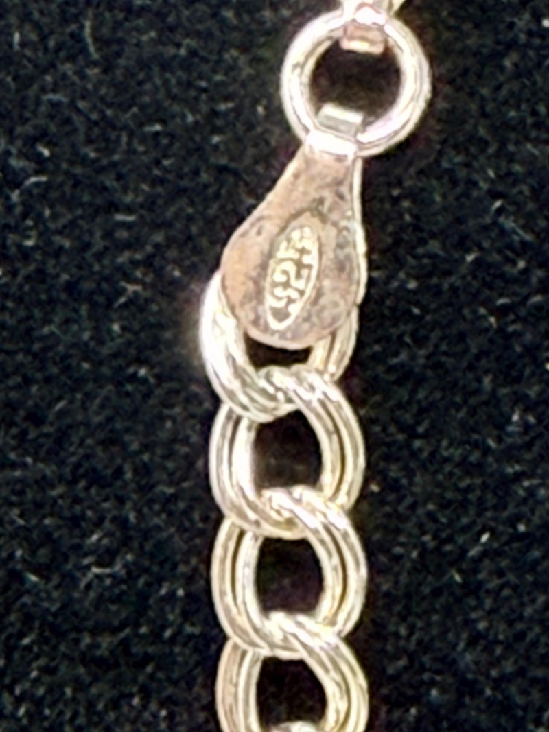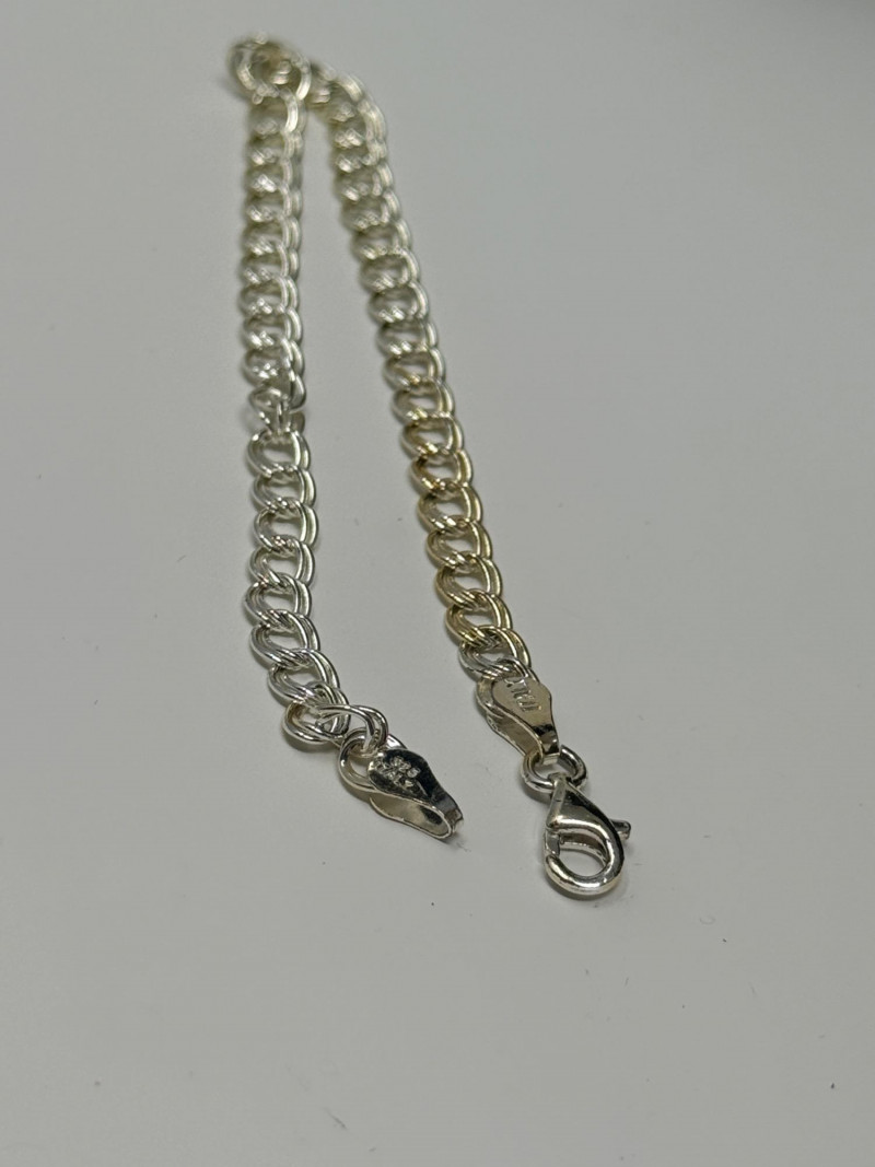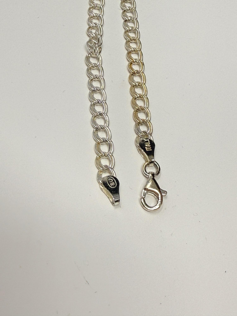 Double chain bracelet is 7” or 18cm. Stamped 925