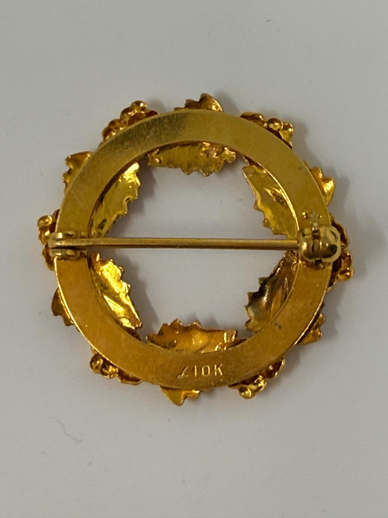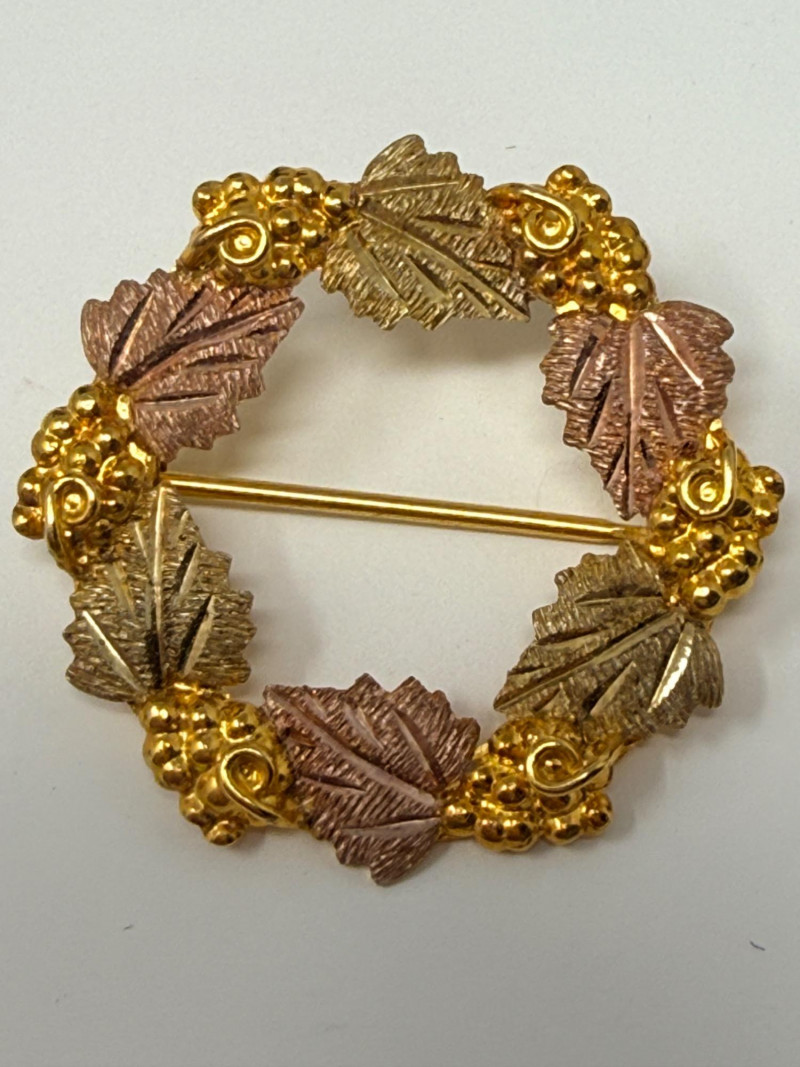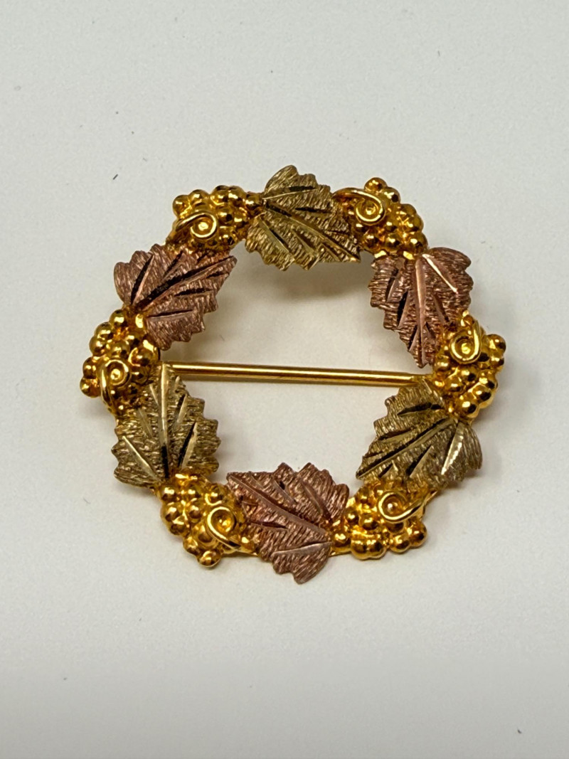 Lot # 295 - Vintage Landstroms Black Hills Gold Grapes & Leaves Wreath Brooch