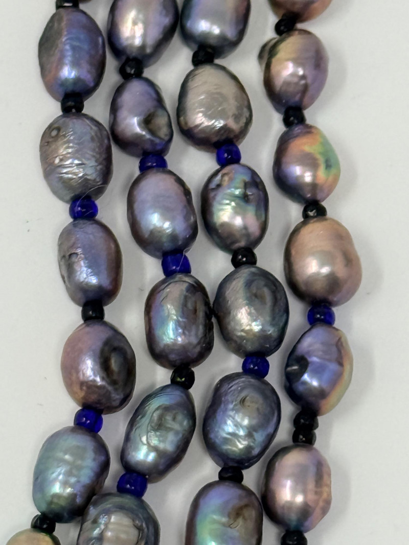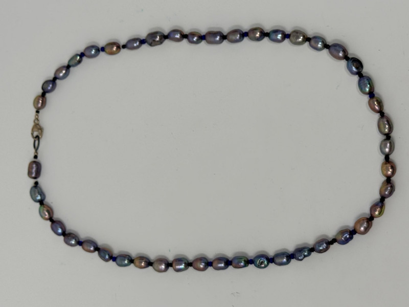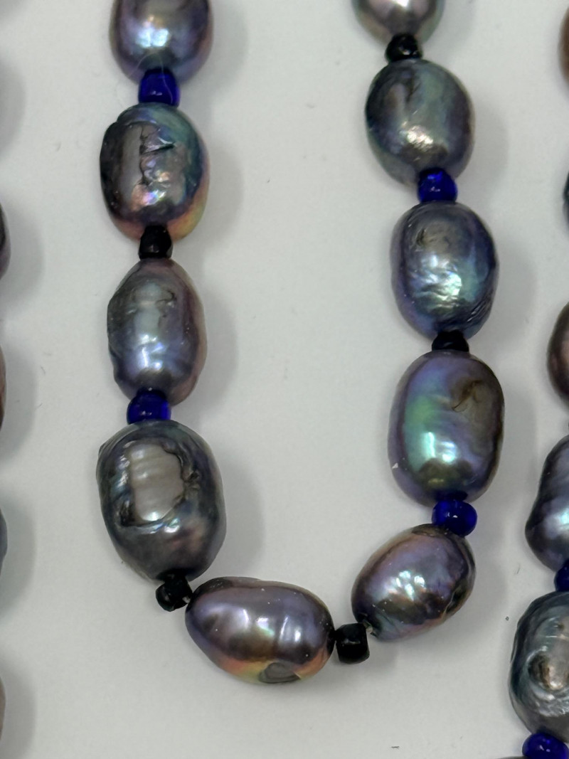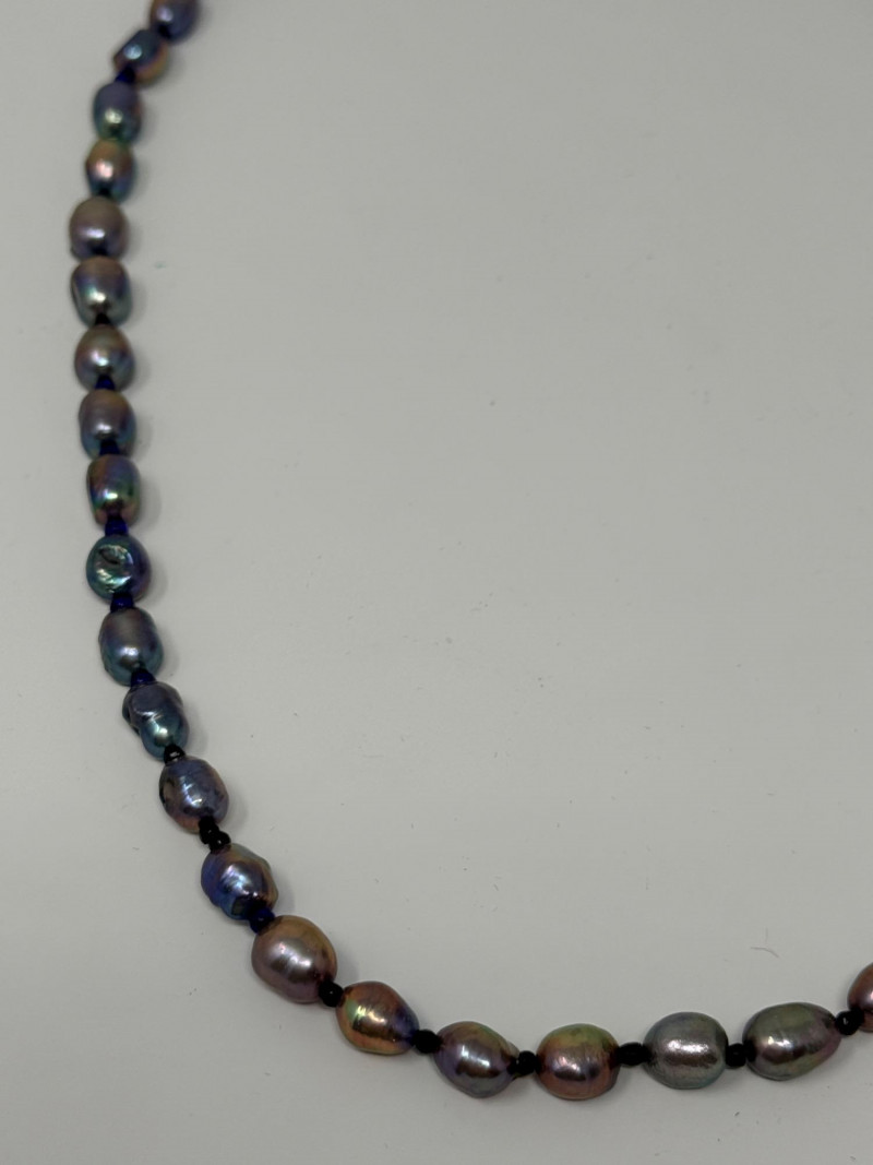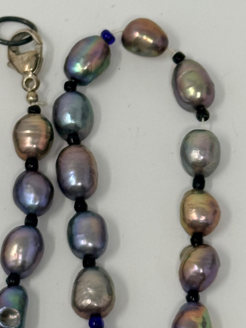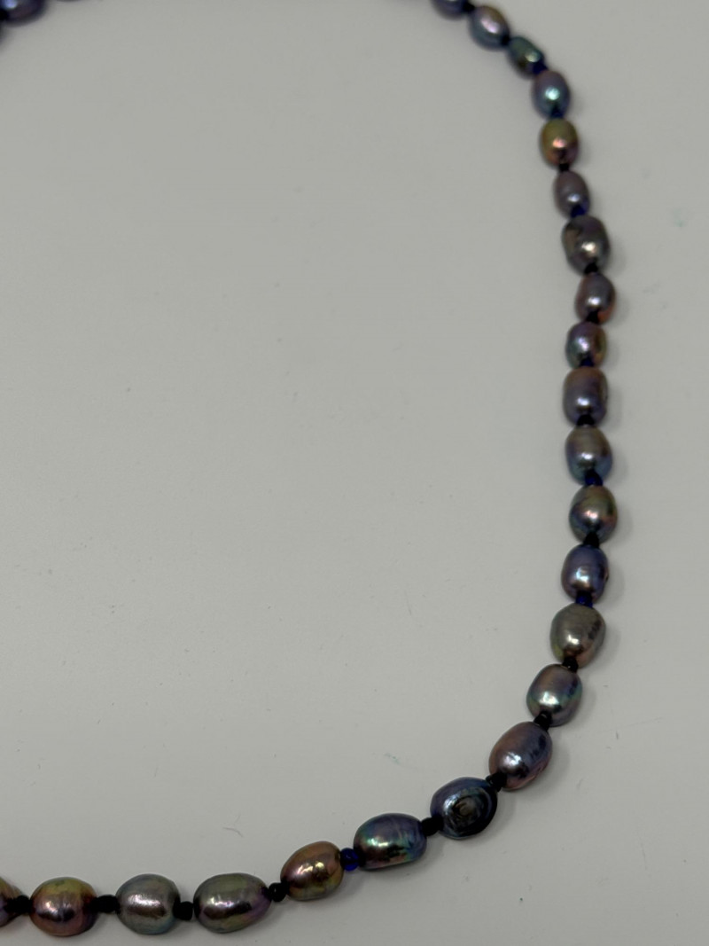 Black Freshwater Pearl Necklace 20” long and each pearl is approximately 6-7mm This is a very colorful pearl necklace.