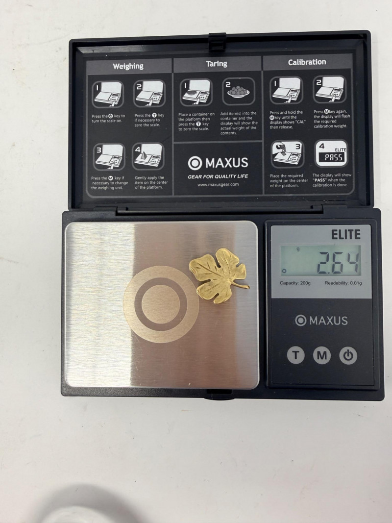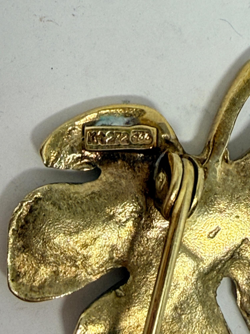 European 8K Gold Maple Leaf Brooch Weighs 2.64 grams Stamped 333