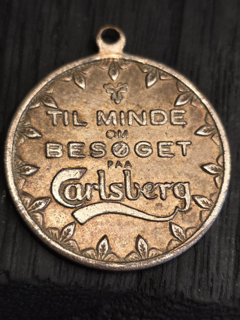 1950s Carlsberg Brewery Commerative Medal Featuring The Iconic Elephant Gate Vintage Carlsberg commemorative medal or pendant, specifically created to mark a visit to the Carlsberg Brewery in Copenhagen, Denmark The front features the iconic Elephant Gate at the Carlsberg brewery, which was completed in 1901. The gate is flanked by two large stone elephants that support a tower Authentic versions of this medal often bear the Danish text "Til minde om besøget på Carlsberg" (To commemorate the visit to Carlsberg) 1"T x 1"W