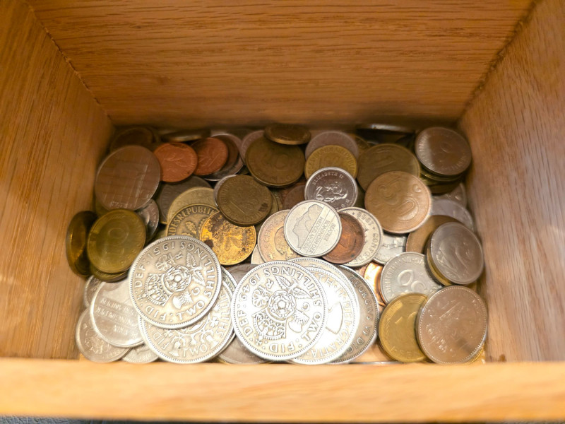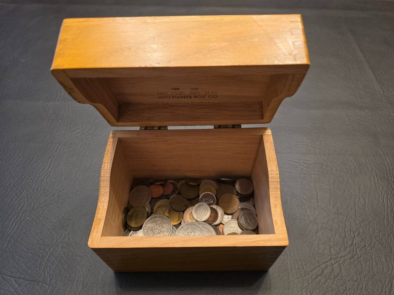 Lot # 264 - Small Wooden Box Of Foreign Coins 1919-2000s