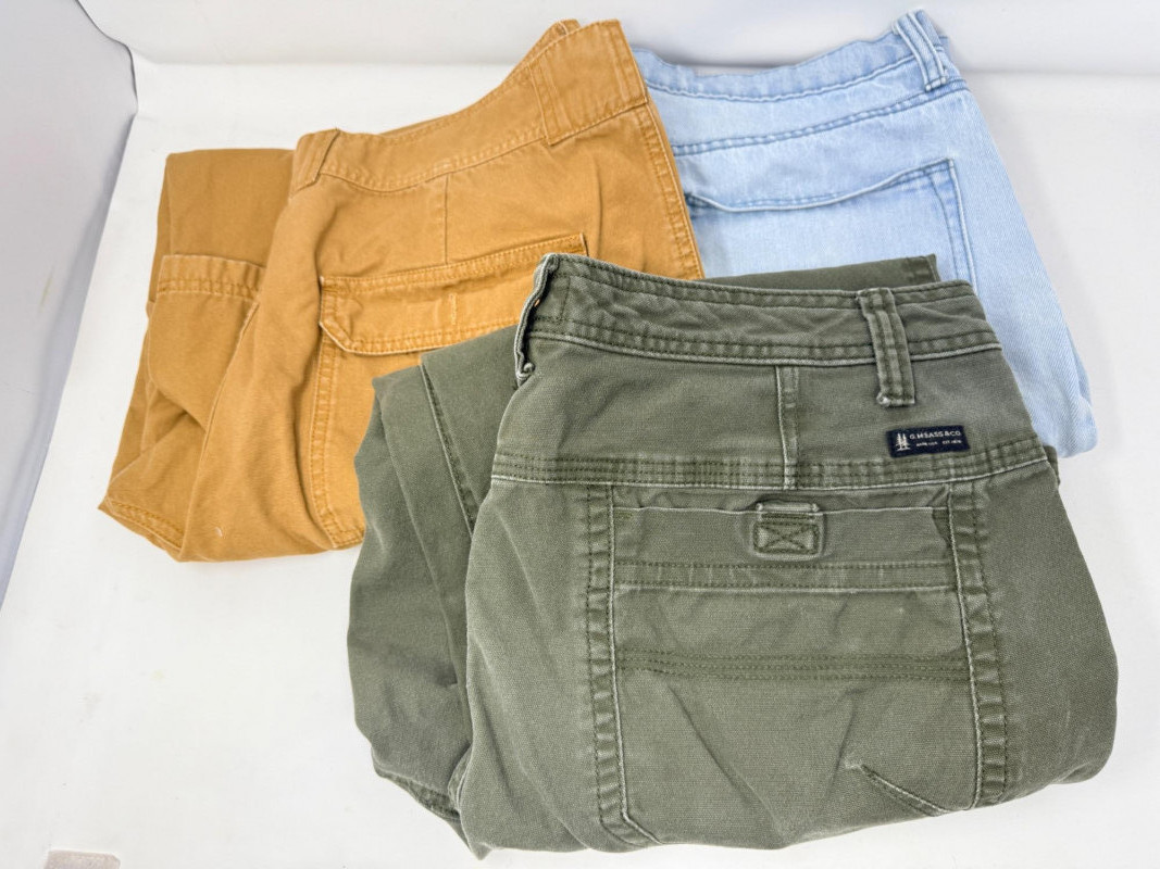 (3) Men’s Pants - Cabela’s, Bass Size 36x30 Light denim Arizona Jean Co. Cabelas orange/brown cargo pants GH Bass green denim pants
