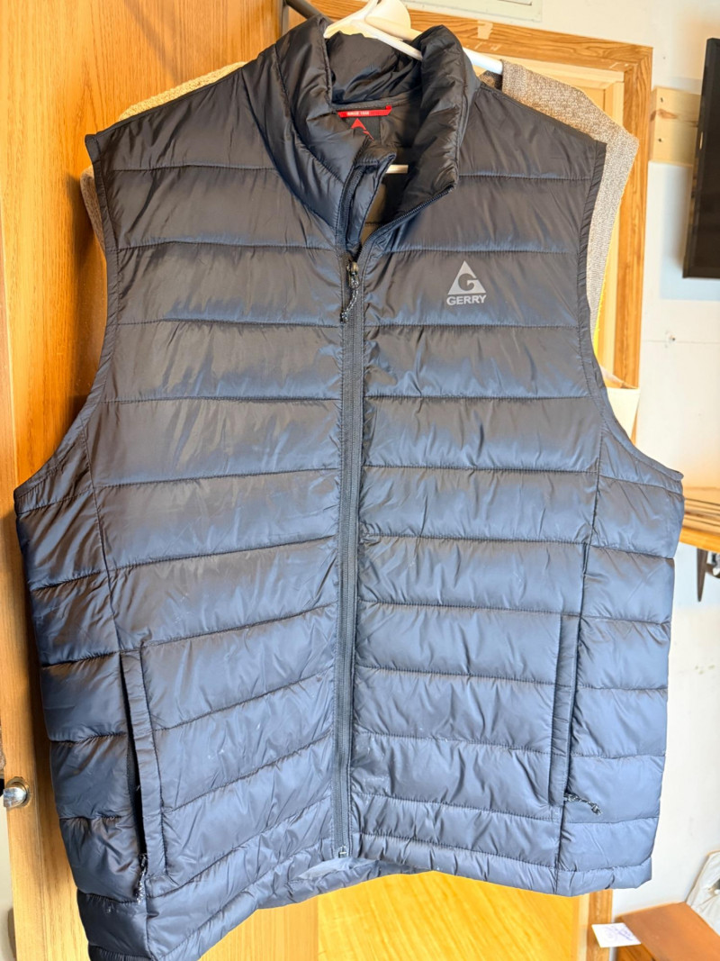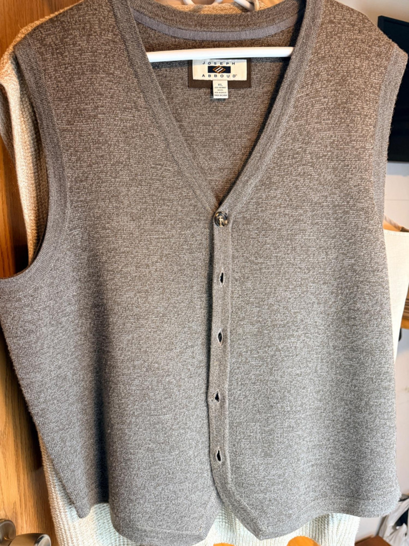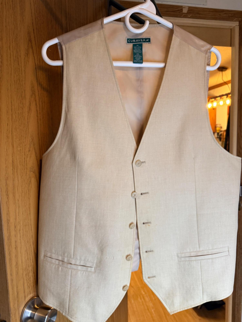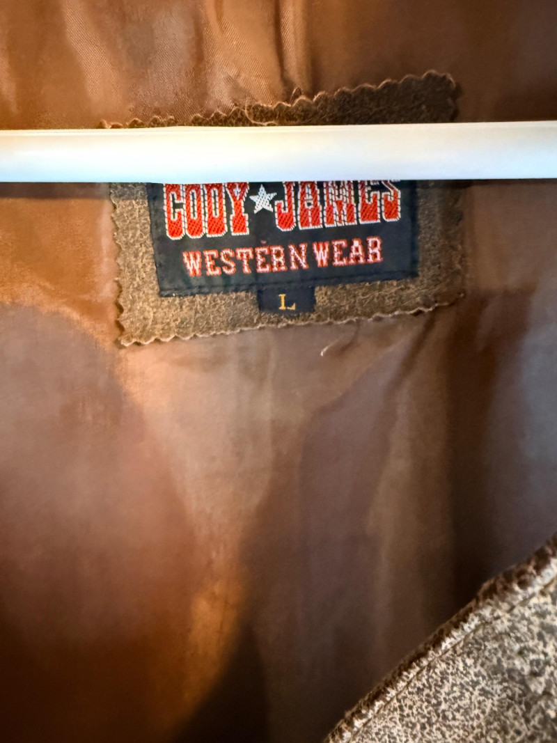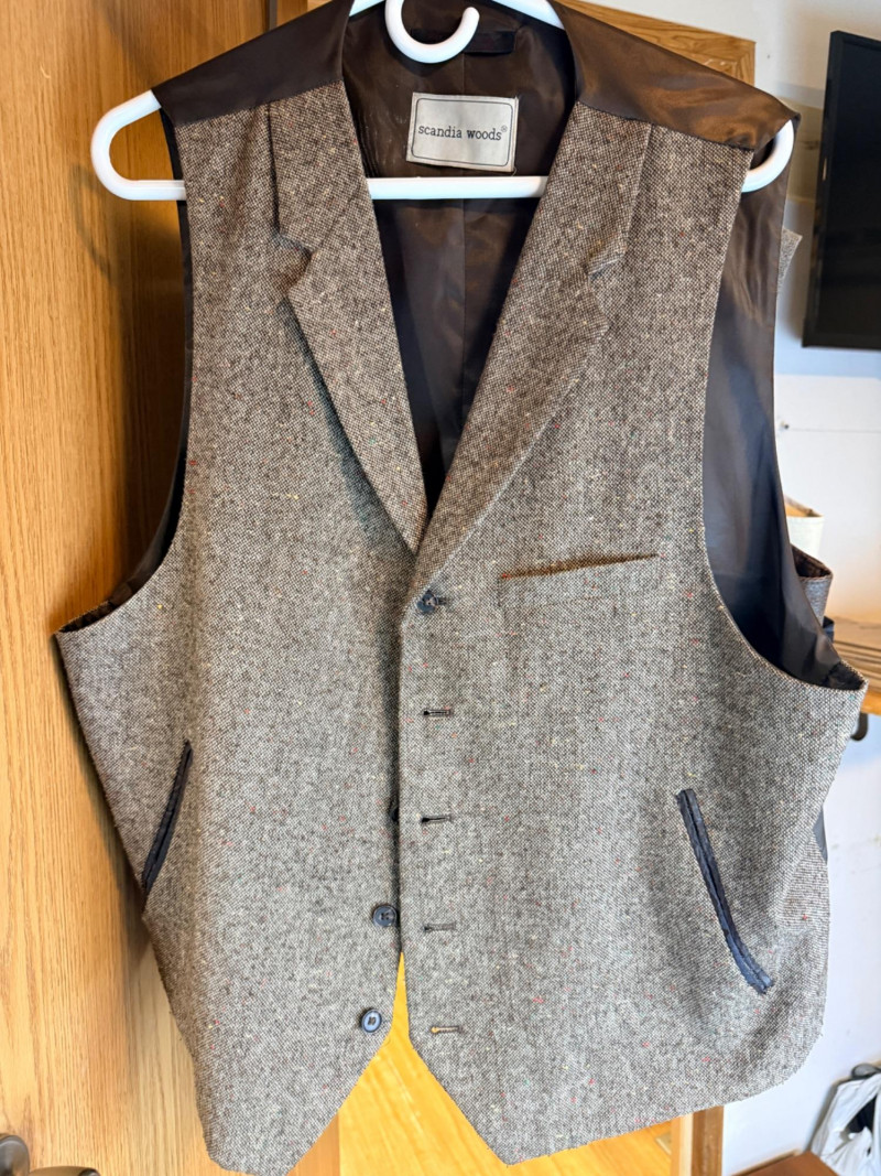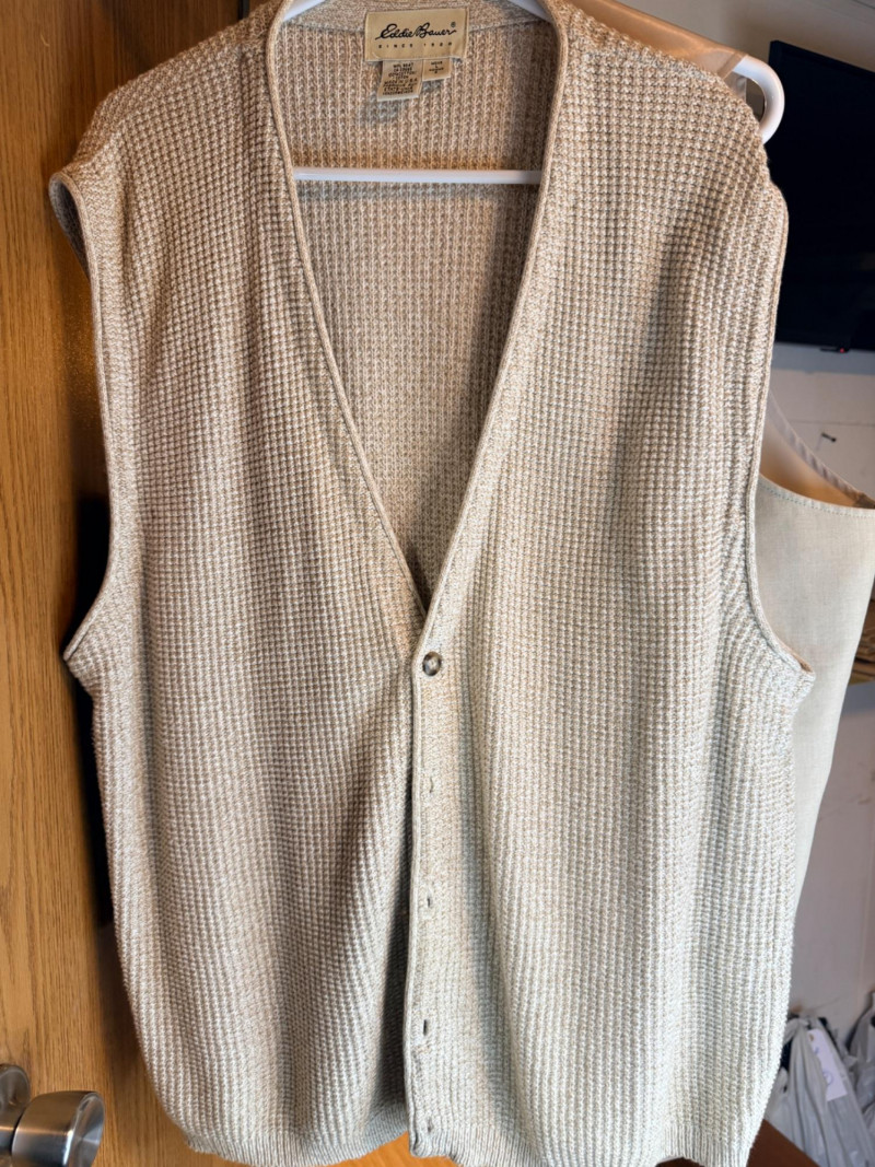 (7) Men’s Vests Size L/XL - Includes Leather and Suede Scandia Woods Cody, James Western Wear leather (L) Joseph Abboud Eddie Bauer Cubavera